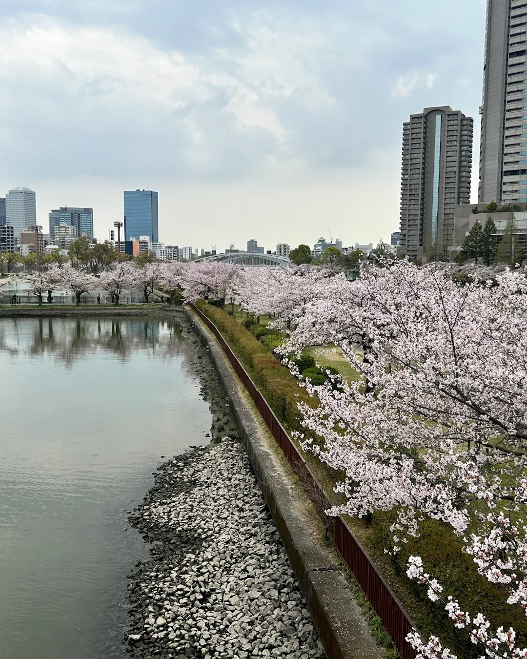4,700+ cherry blossom trees around the river and its just a short walk from the Osaka Castle.