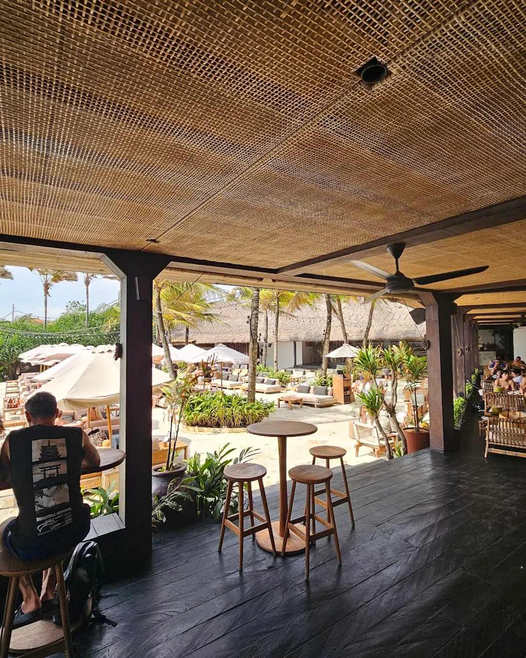 A beachfront bar and restaurant with ocean views, daybeds, and a relaxed vibe. Perfect for afternoon lounging, sunset cocktails, and transitioning into evening drinks.