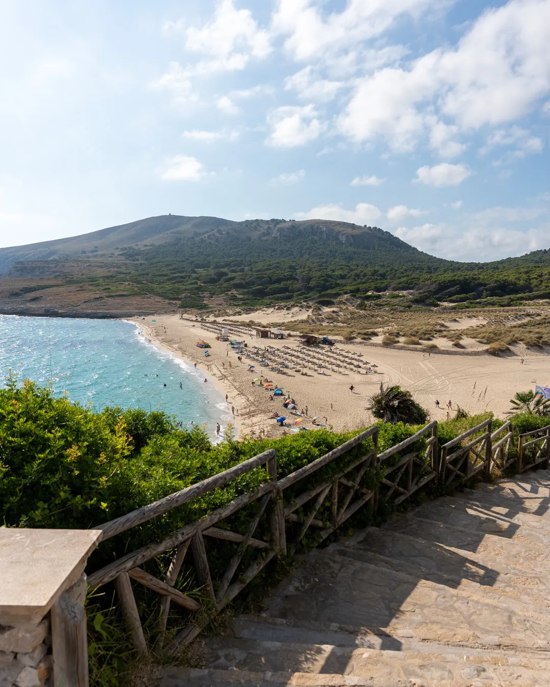 Cala Mesquida is a stunning bay with fine white sand and incredibly clear, turquoise waters, framed by rolling dunes and pine-covered hills. It feels wonderfully unspoiled, as it's part of a protected area, making it a peaceful escape. After a short 5-minute walk from the car park, you can relax on the beach, go for a swim, or explore the wooden walkways through the dunes. For a bit more adventure, there are lovely coastal paths leading to other nearby coves.