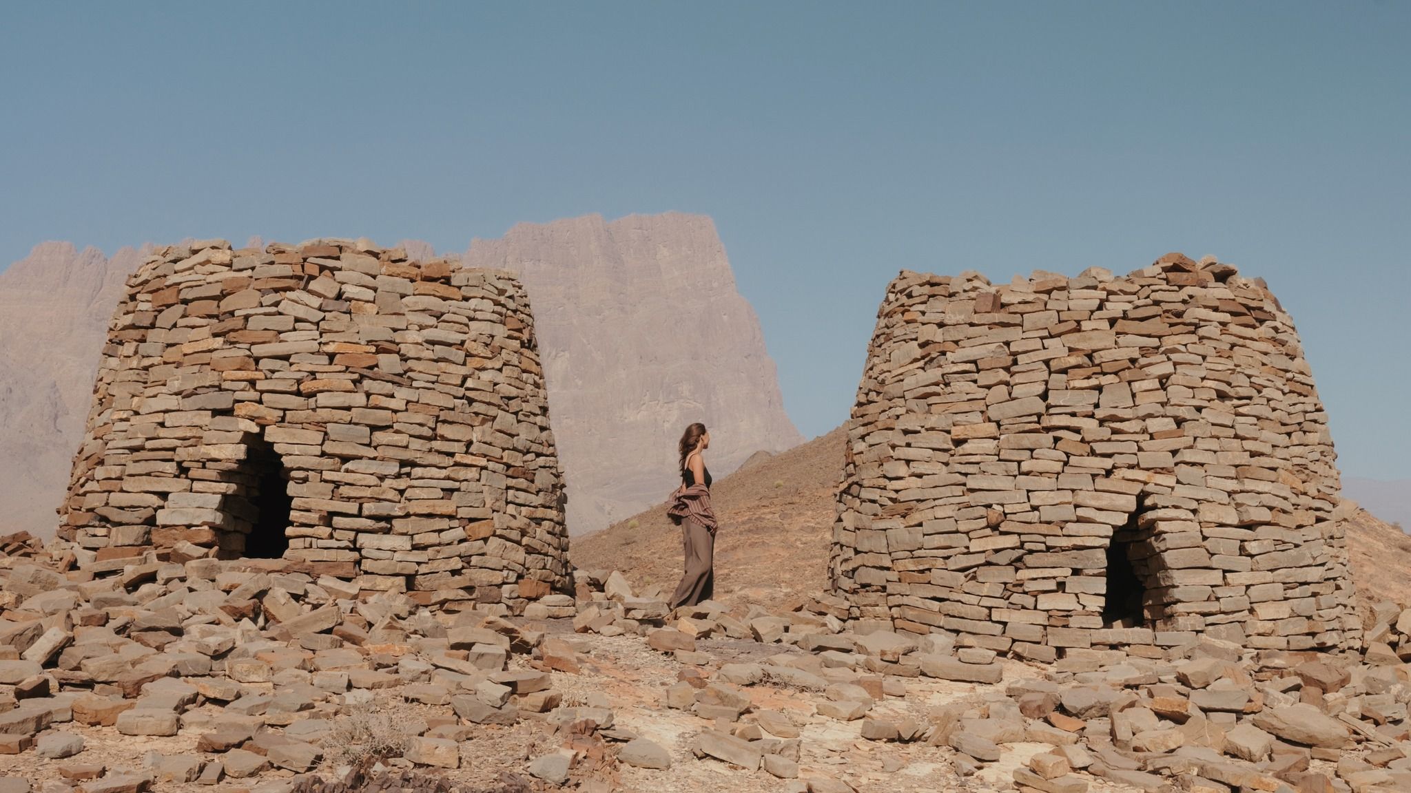 Seeing them scattered across the landscape feels almost surreal, especially with the beautiful Jebel Misht as a backdrop.
