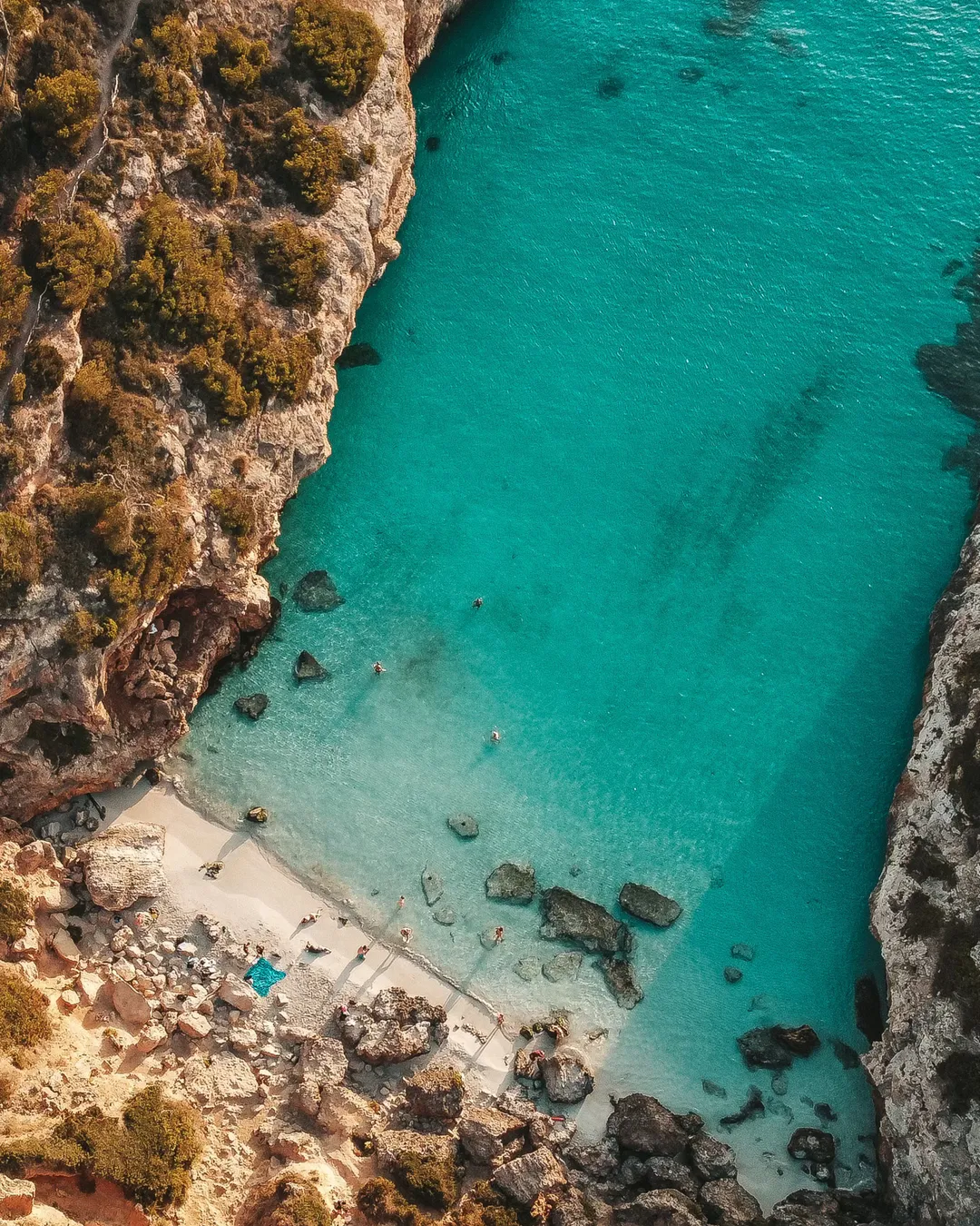 Get ready for a view that looks like a real-life postcard. Tucked away at the base of dramatic cliffs, Caló del Moro boasts some of the most stunningly clear, turquoise water you'll ever see. It's a bit of an adventure to get to; from the nearest car park, you're looking at a 15-to-20-minute walk that ends with a steep, rocky scramble down to the sand. Because the beach itself is tiny, it's best for a breathtaking swim and some incredible photos rather than setting up for the whole day.