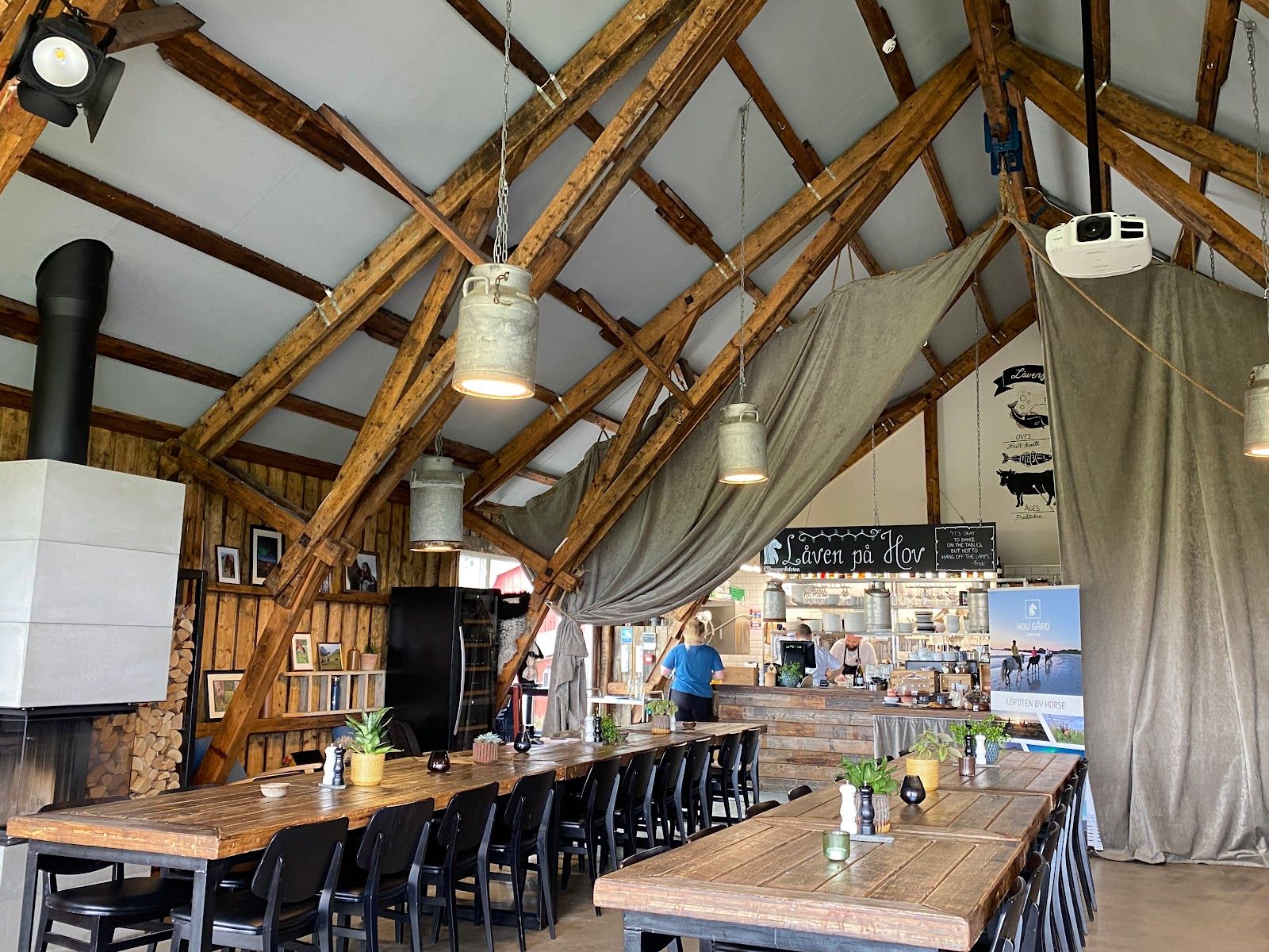 Cozy barn restaurant with views