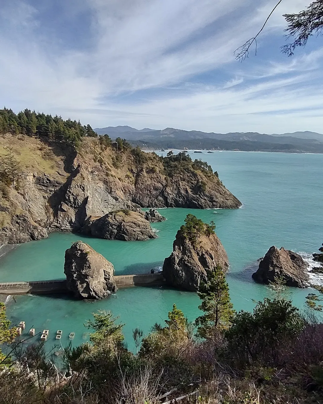 Scenic coastal park with historic station