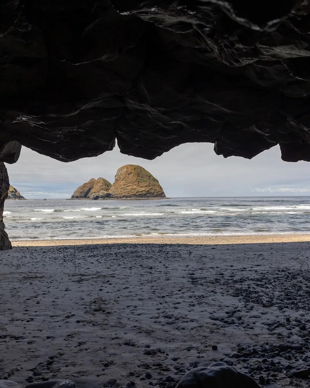 Secluded beach with tunnel access