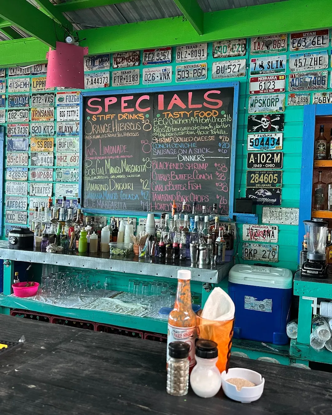 Beachfront bar with extensive menu