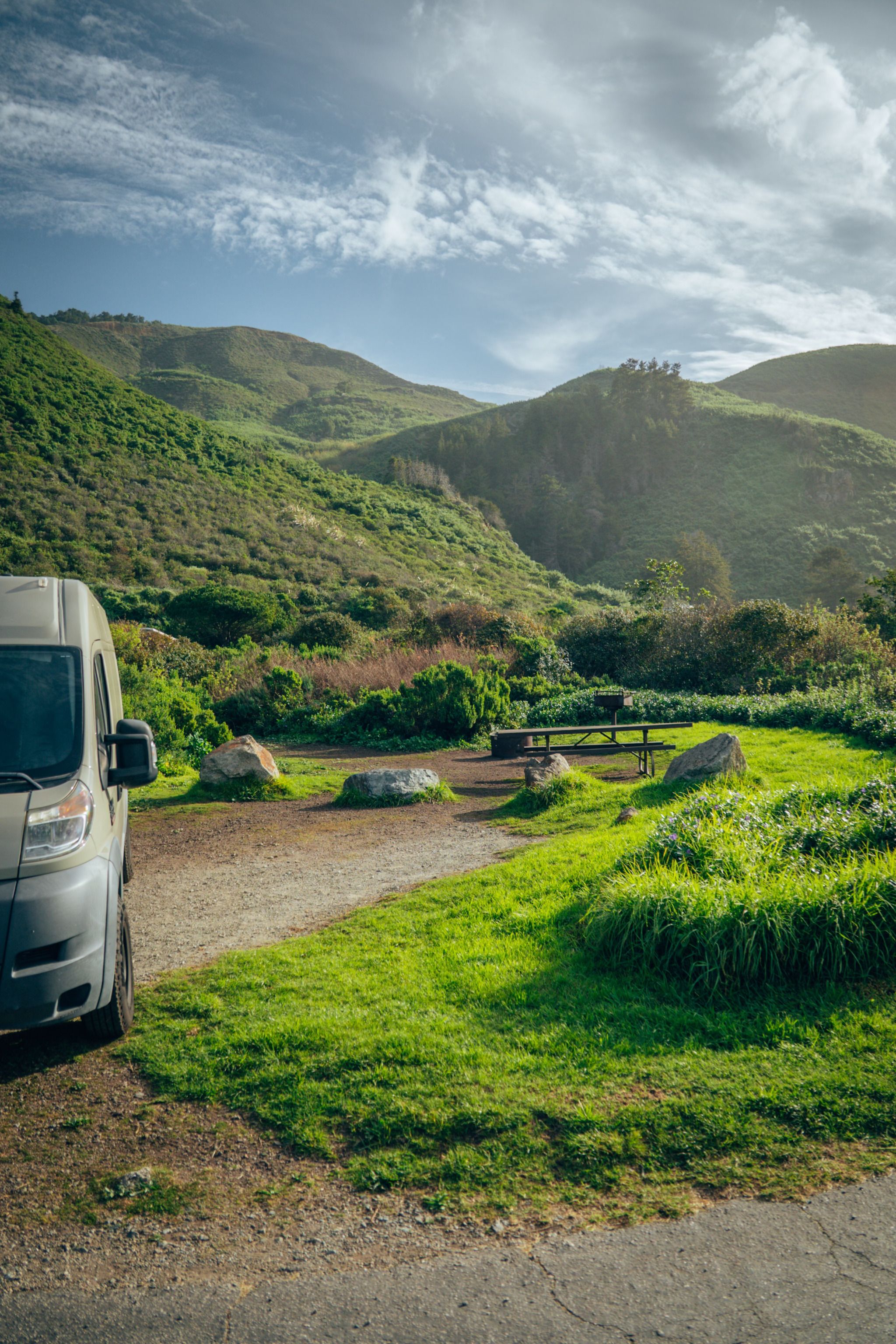 Perched on a dramatic bluff overlooking the Pacific, Kirk Creek is where you come for some of the most spectacular coastal views in Big Sur. Many of the sites here face the ocean, offering an unparalleled spot to watch the sunset or even spot migrating whales in the winter. There's a path that winds down to a secluded rocky beach (see Kirk Creek Trail on our map), and right across the highway, you can jump on the Vicente Flats Trail for a beautiful hike into the Ventana Wilderness. Just be sure to come prepared, as there's no running water or dump, but the million-dollar views more than make up for the rustic facilities.