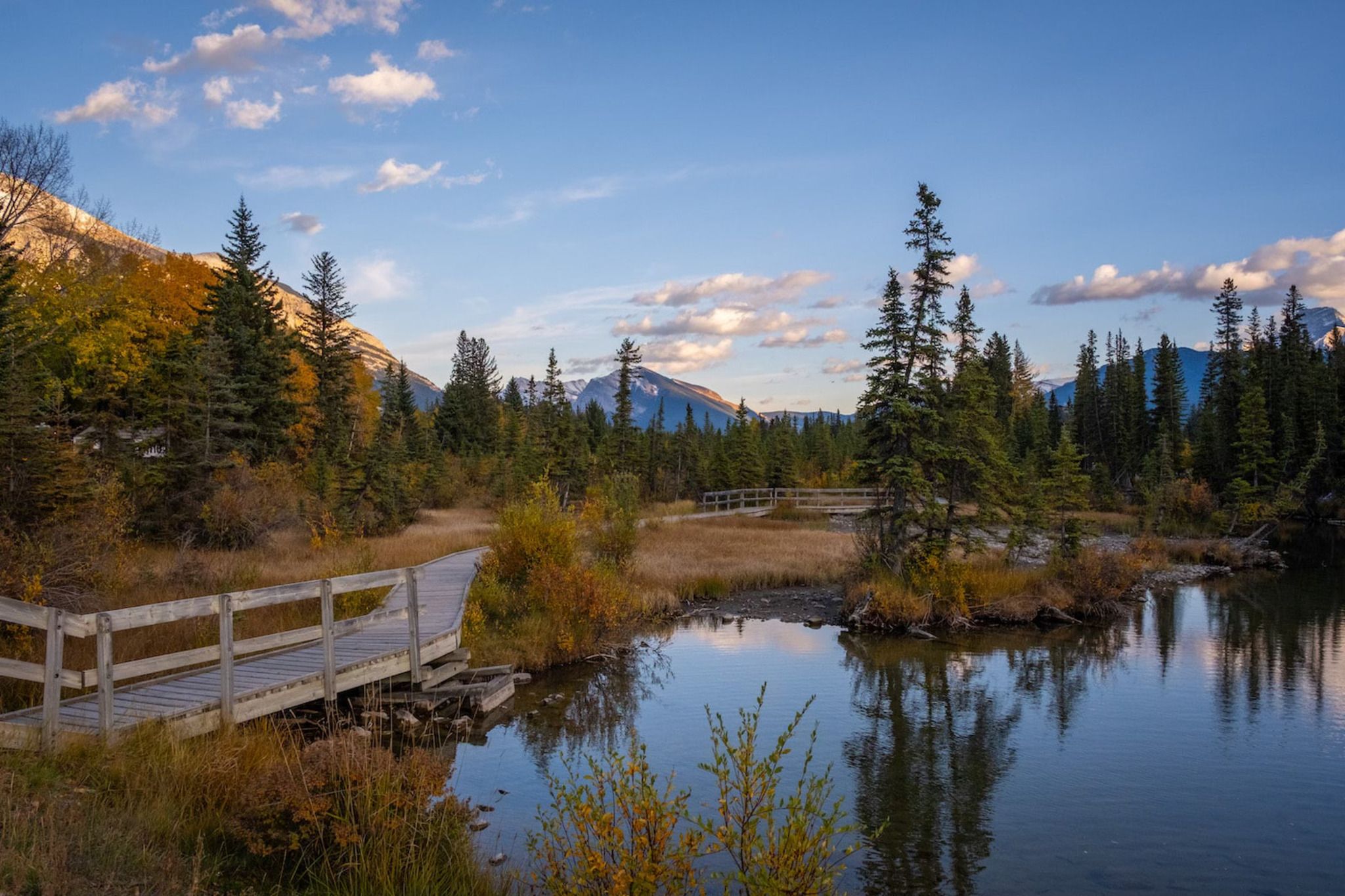 Scenic creekside boardwalk in Canmore