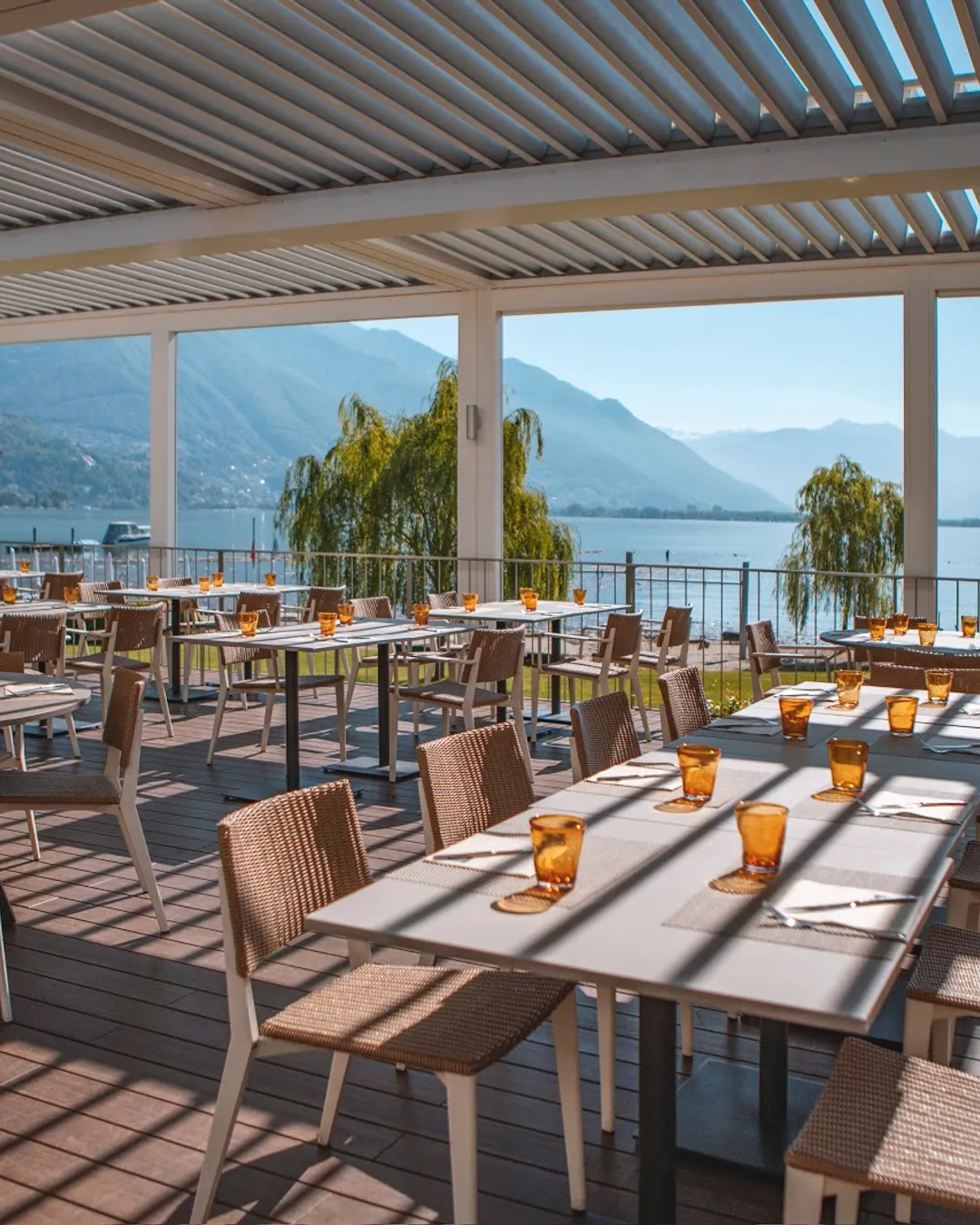 Elegant restaurant with terrace lake view