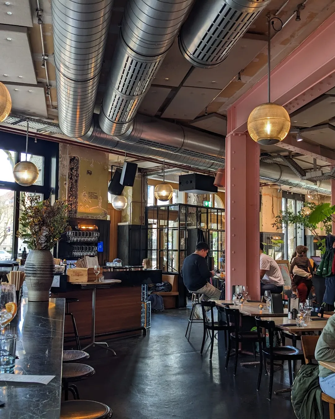 Industrial chic café in a former bank