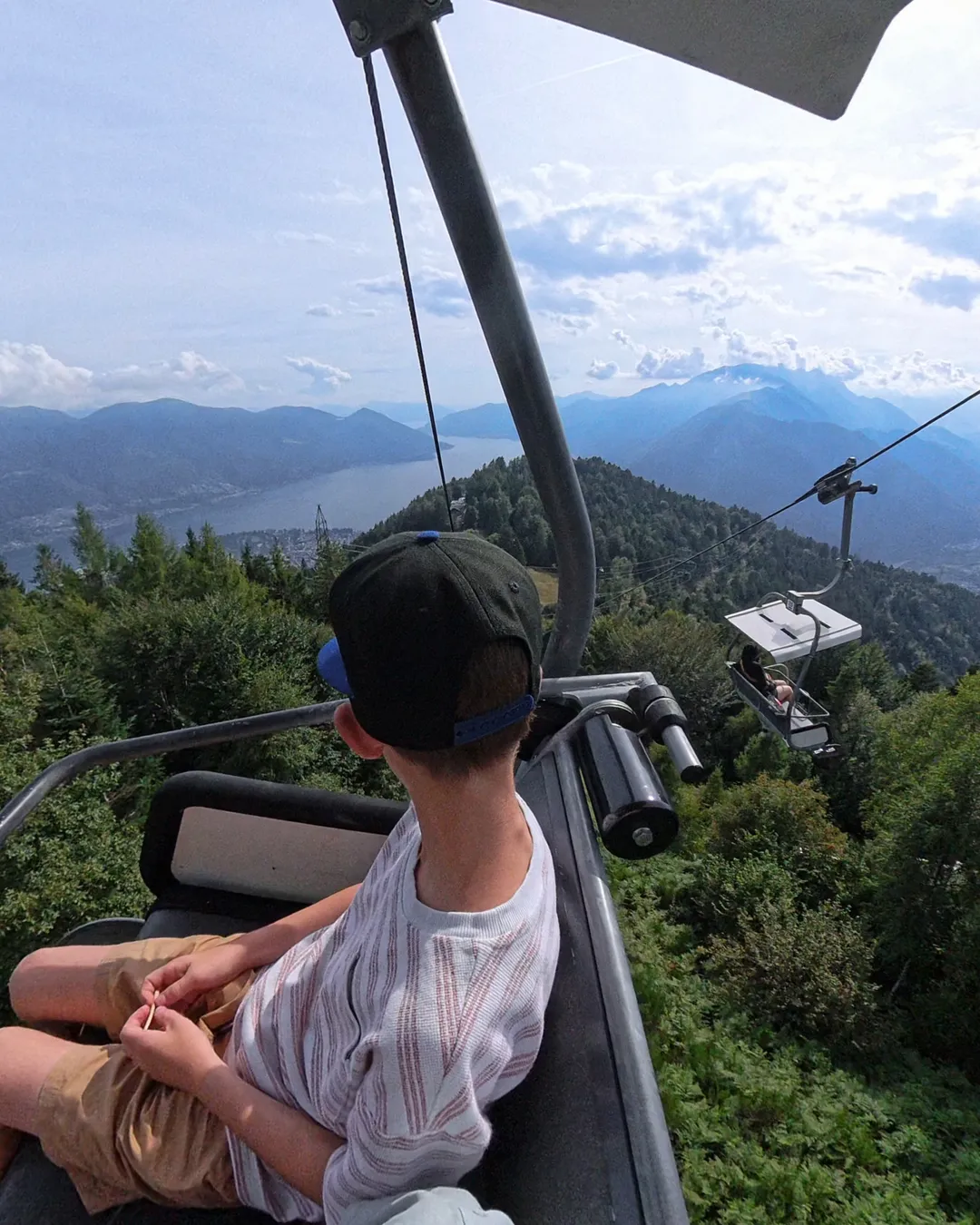 From the top of the Cardada gondola, you can hop on a second lift—a 2-seater open chairlift—that carries you up to Cimetta (1,671 m). It’s a slow, scenic ride where you dangle your feet above the forest, and kids usually love the novelty of being in an open-air sideways chair.