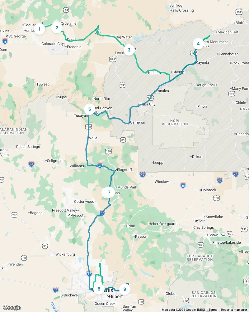 This interactive map of the Southwest USA covers over 200 hand picked locations including 160+ across Arizona, 50+ in Southern Utah, and 15 in Southern Nevada. This map includes hikes, viewpoints, guided tours, scenic drives, charming towns, night life, swimming holes, places to stay, restaurants, campsites, coffee shops and more! This map is built for road trips, weekend getaways, spontaneous detours, and for anyone who wants to spend less time planning and more time actually exploring Arizona and the Southwest!