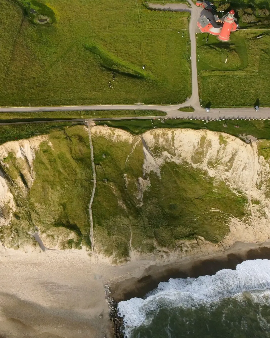 Bovbjerg Fyr is another of Denmark's iconic flying sites you may have seen. It has a beautiful backdrop of the red lighthouse that glows in the evening sunset. An amazing site with great variety for a small area. I often used it as a base to fly south to Trans Kirke and north to Ferring. The variety of terrain on this 4 km stretch of coast is world class. From 5m grassy ridge lines to 30m vertical cliffs with everything in between. Bovbjerg has a lower grassy section that is helpful for launching full size wings or even a Mo on really strong days. It has a staircase and handrail that is fun to session.