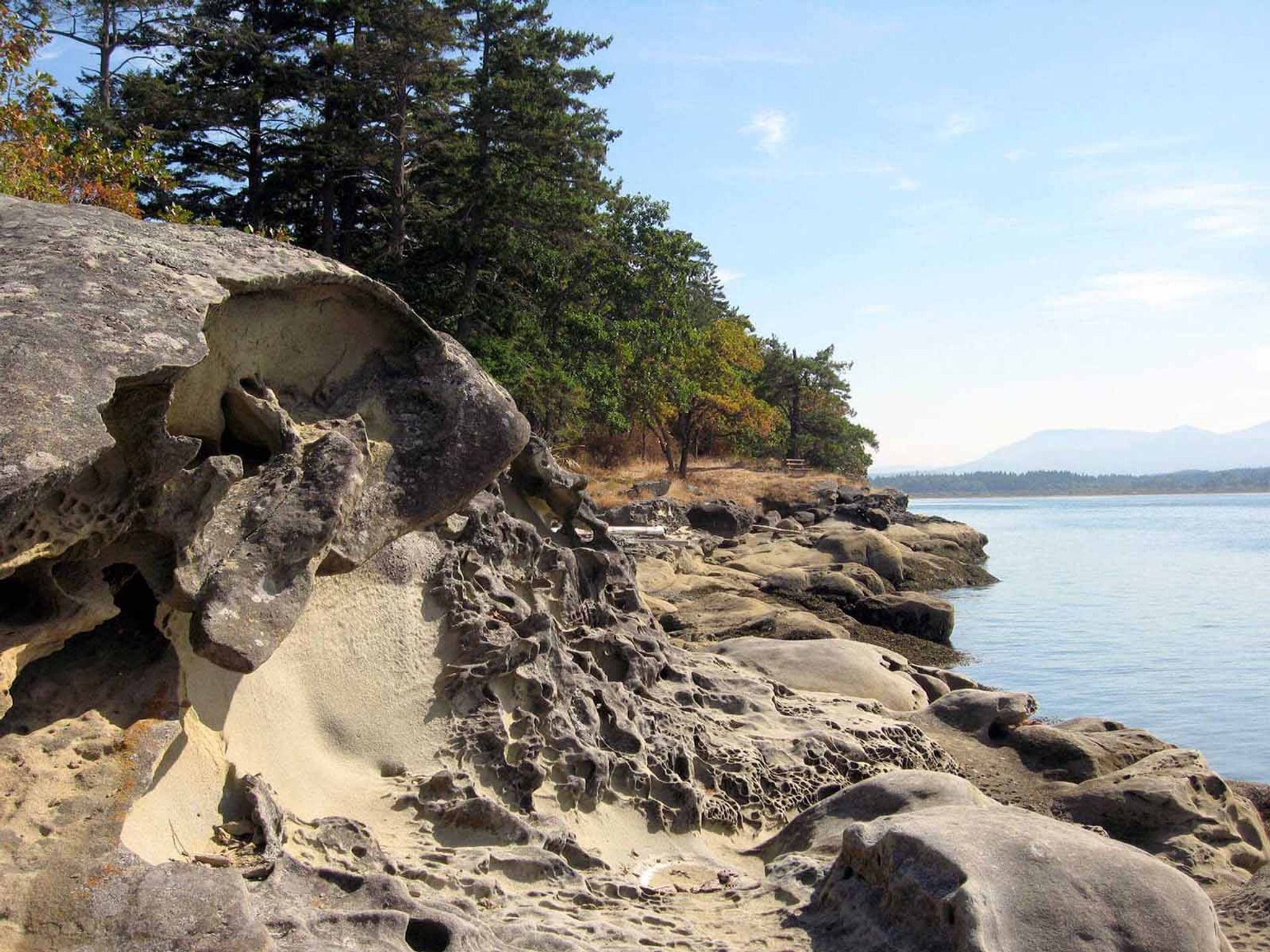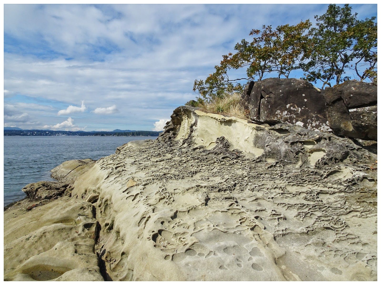 Coastal walk with sandstone formations