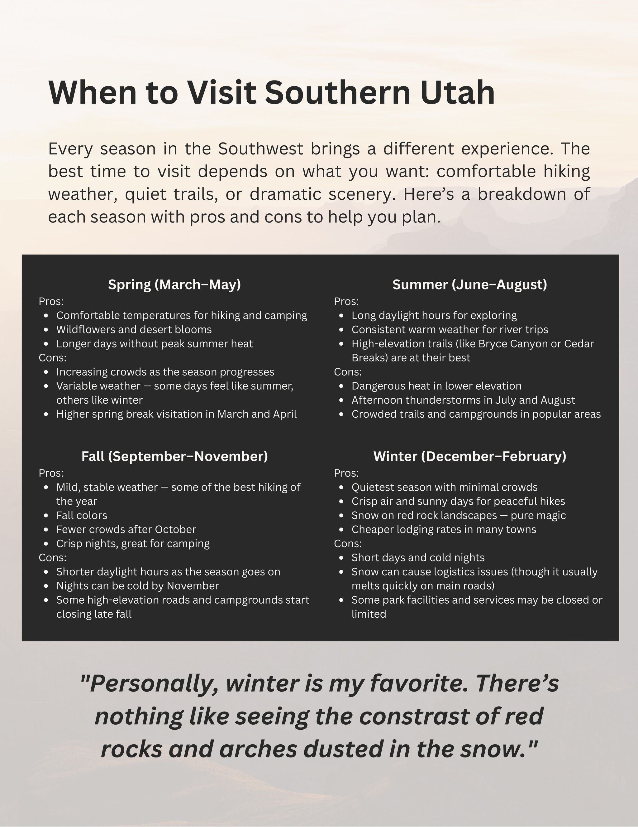 “When is the best time to visit Southern Utah?”