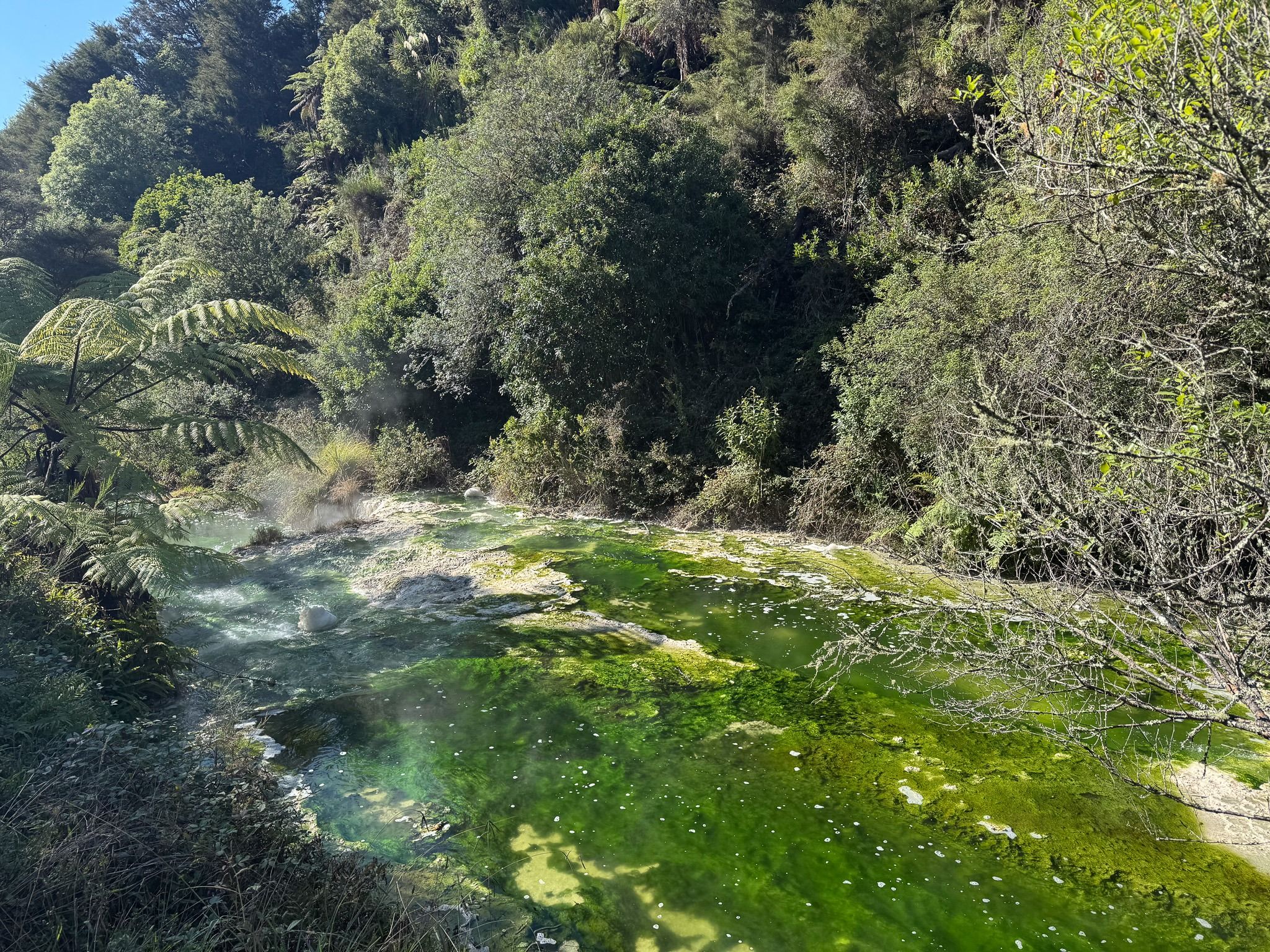 The Waimangu Volcanic Valley is located a short 20-minute drive from Rotorua’s city center. This unique valley is the world's youngest geothermal system and was created as a direct result of the violent Mount Tarawera eruption in 1886. The eruption tore open a 17-kilometer or 10.5 mile rift, giving birth to the unique hydrothermal features and landscape seen in the valley today. As you wander along well-maintained trails, you'll encounter steaming vents, numerous small springs, the immense hot water spring called Frying Pan Lake, the stunning Inferno Crater Lake, and many other interesting sights. You need a minimum of 1.5-2 hours to explore the valley since it’s divided into different trail sections and winds down a steady hill. We walked the 3.2 kilometer or 2 mile “Terrace Track”, which goes from the Visitor Center to Bus Stop 2, and passes by the major highlights of the valley. We took the free shuttle bus back to the visitor center. Make sure to check opening hours and shuttle bus schedules in advance since they’re quite limited. There is also the option to do a cruise on Lake Rotomahana (extra charge).