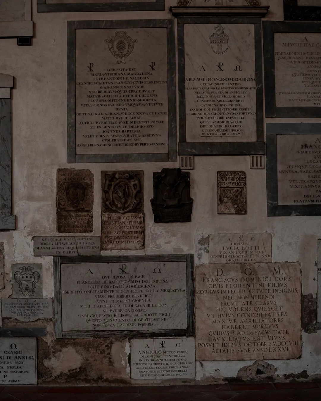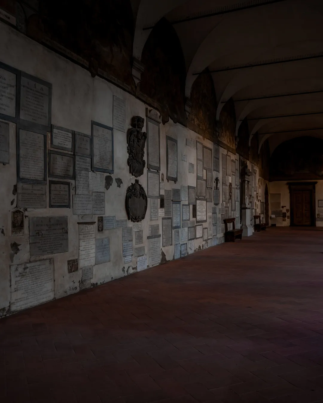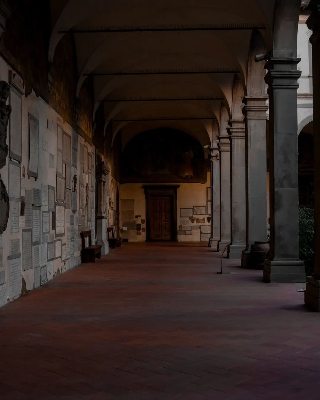 To be quite honest, standing in the piazza looking up at its exterior, I found the church to be rather non- descript in its design and upon entering I was struck by how stark its interior was compared to the heavily decorated Italian Gothic churches I have been used to visiting. I would still recommend wandering around the basilica to appreciate the Renaissance architecture and artworks but tucked away and unbeknown to many, is a fascinating little cloister which ended up being one of my favourite dark locations during my time in Florence!