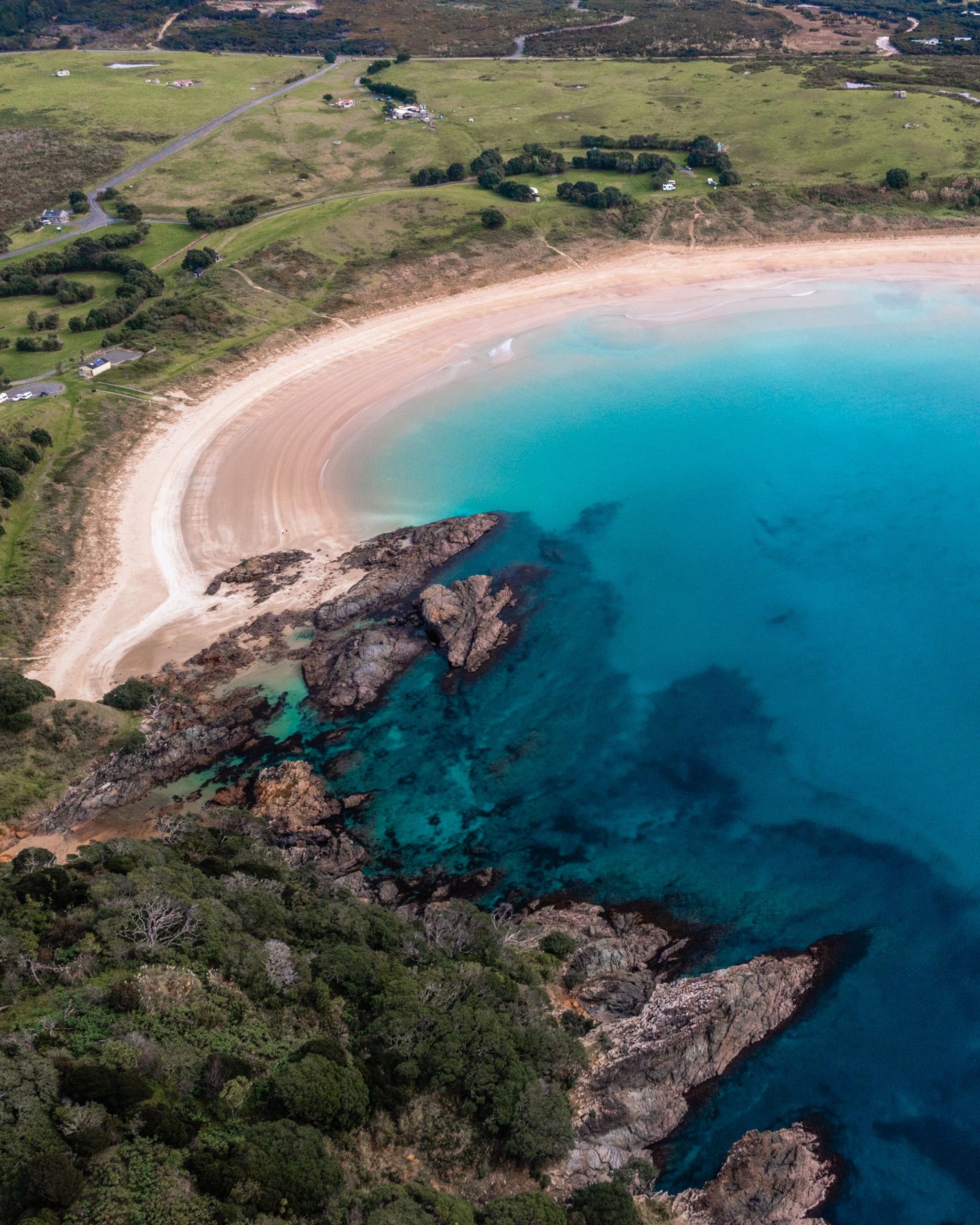 Photography info: Although super stunning from the ground, I found that the views that really gave Maitai Bay justice were from above with the drone. The perspective from the sky really showed off how stunningly blue the water is in the bay, and then the surrounding native forest looked incredible against the water in contrast. You can also see how prominent the curve in the bay is when you are looking from a top down position.