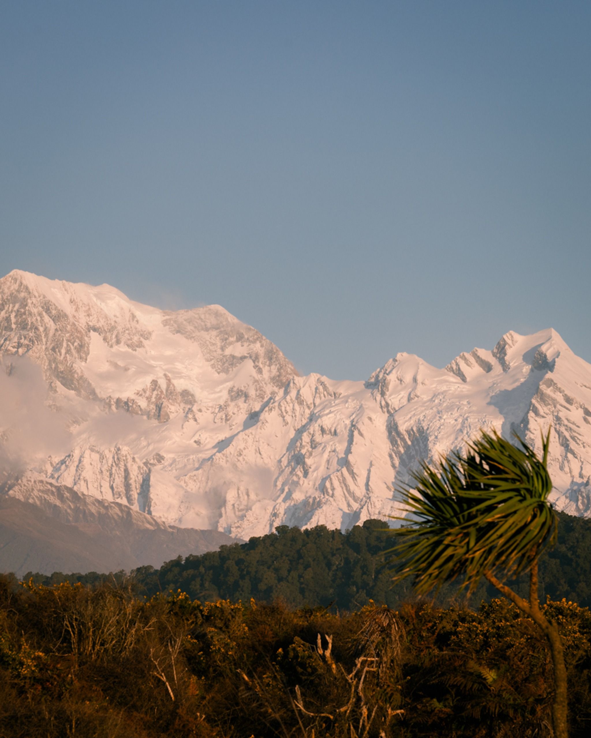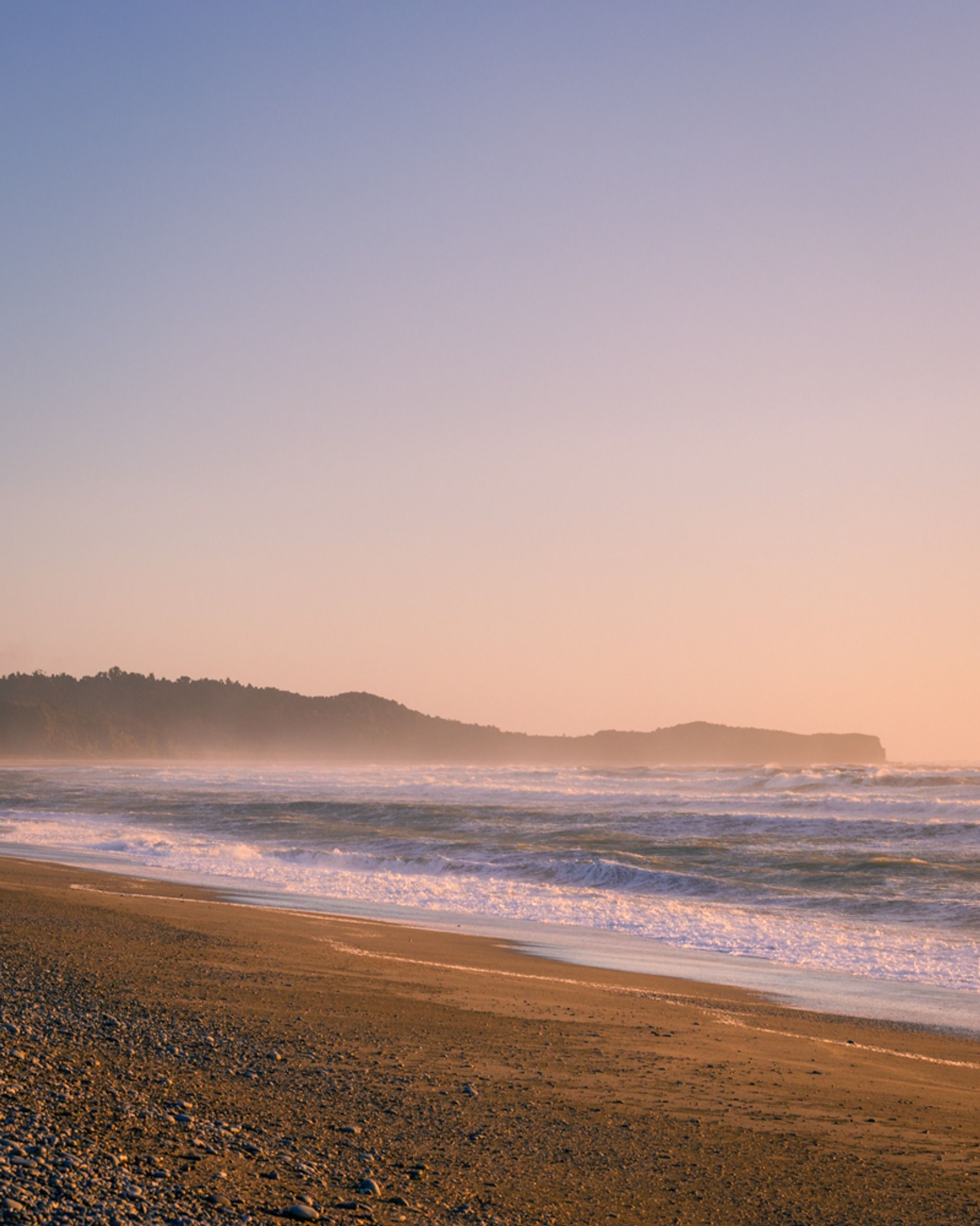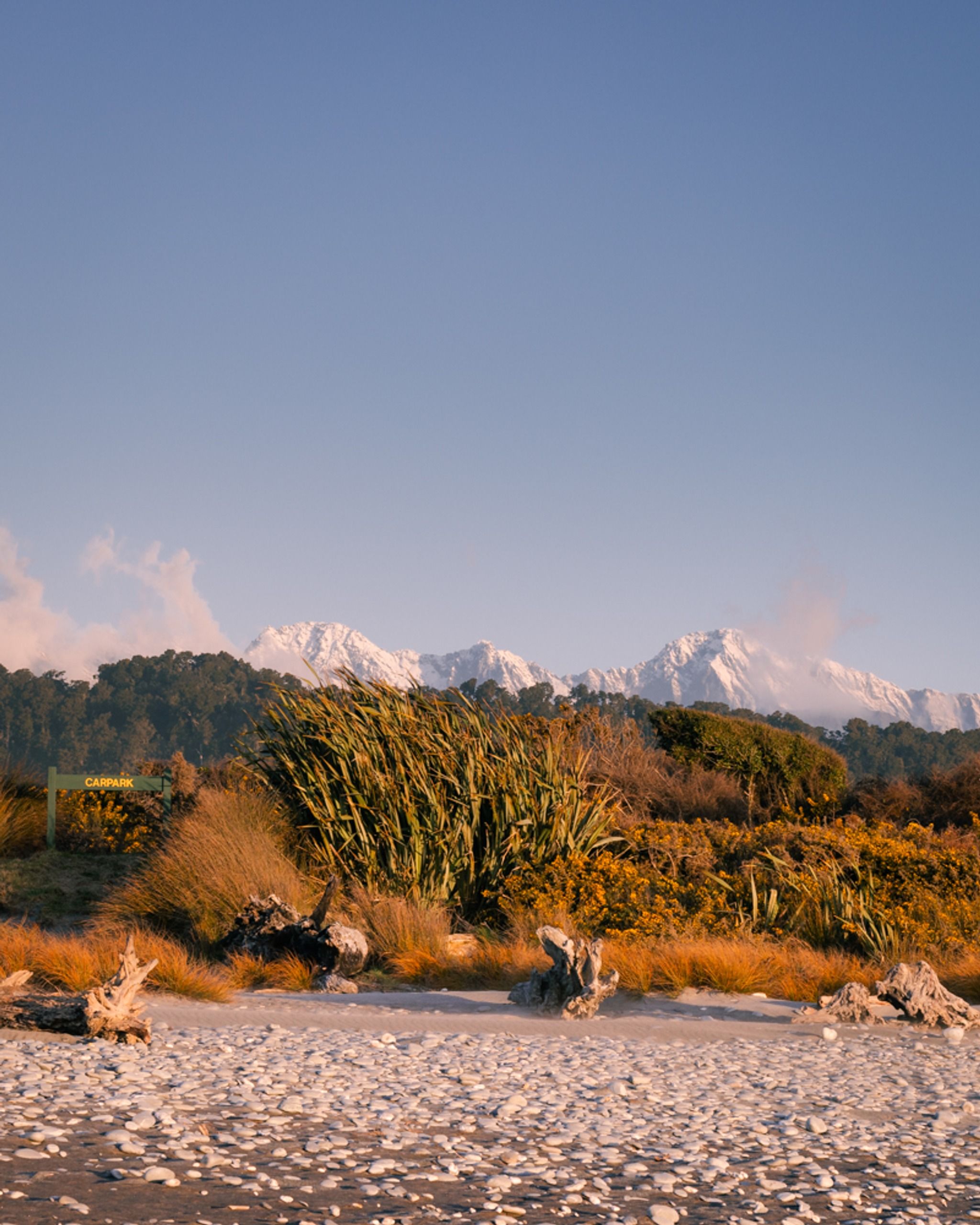 Rugged west coast beach with views of Mount Cook