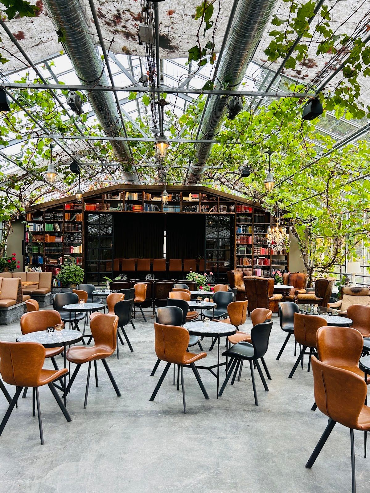 Cozy wine bar in greenhouse