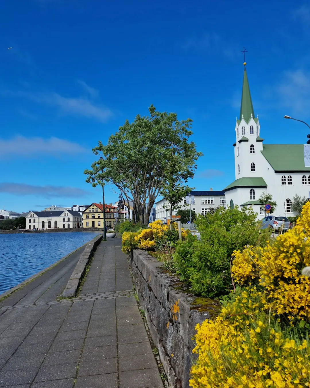 Charming Reykjavik pond with activities