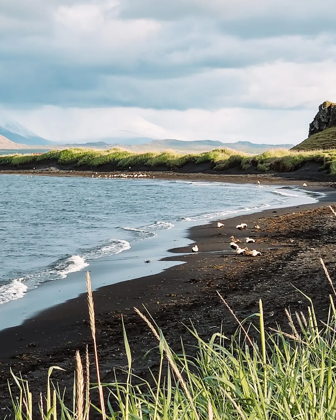 Icelandic rock formation and wildlife