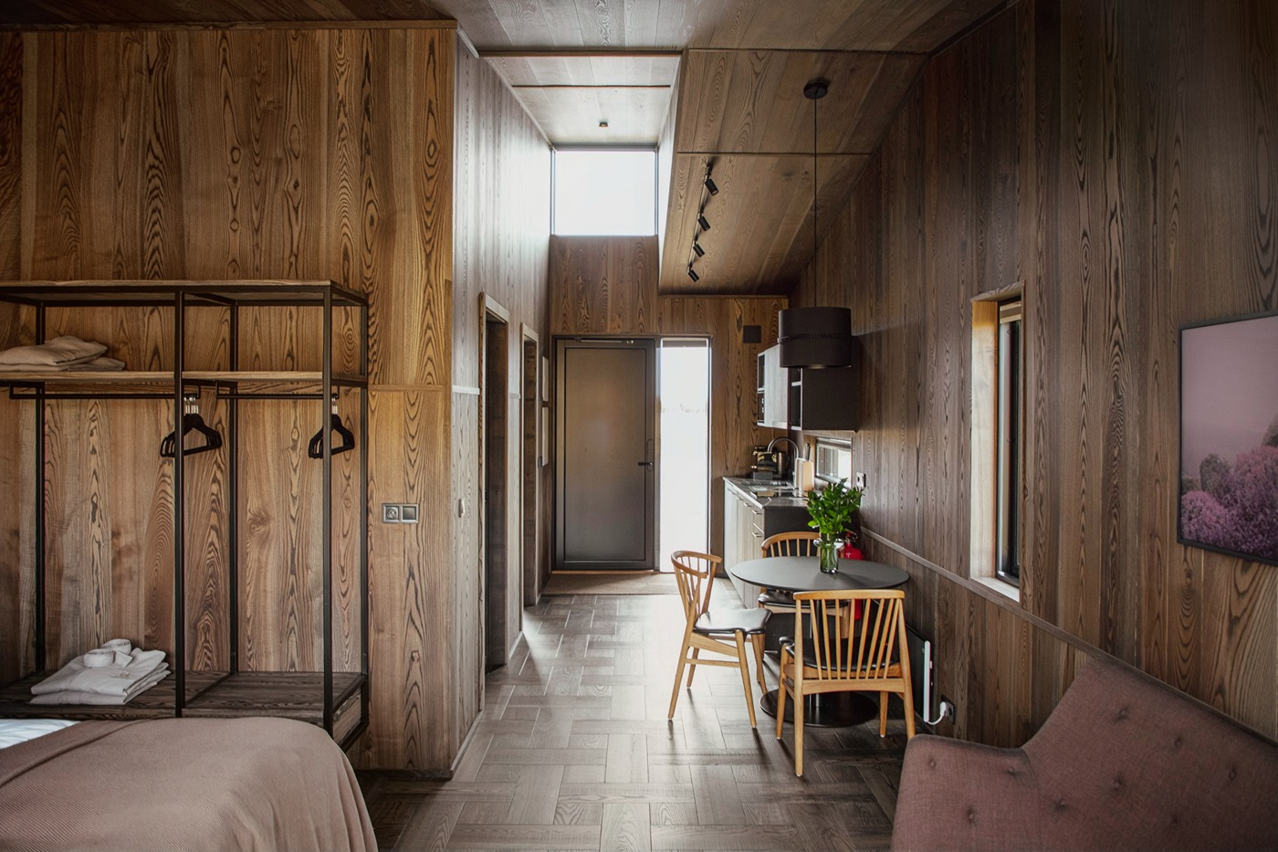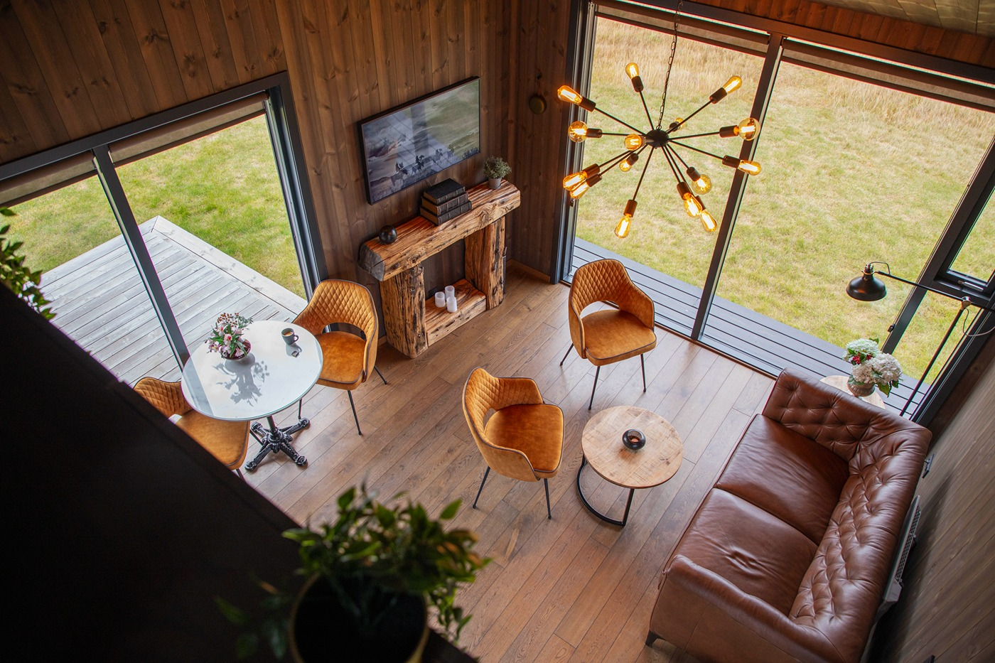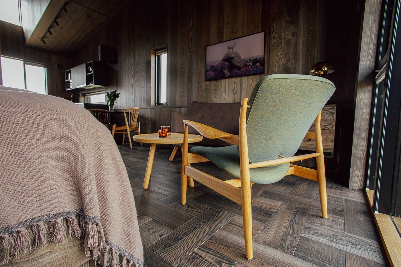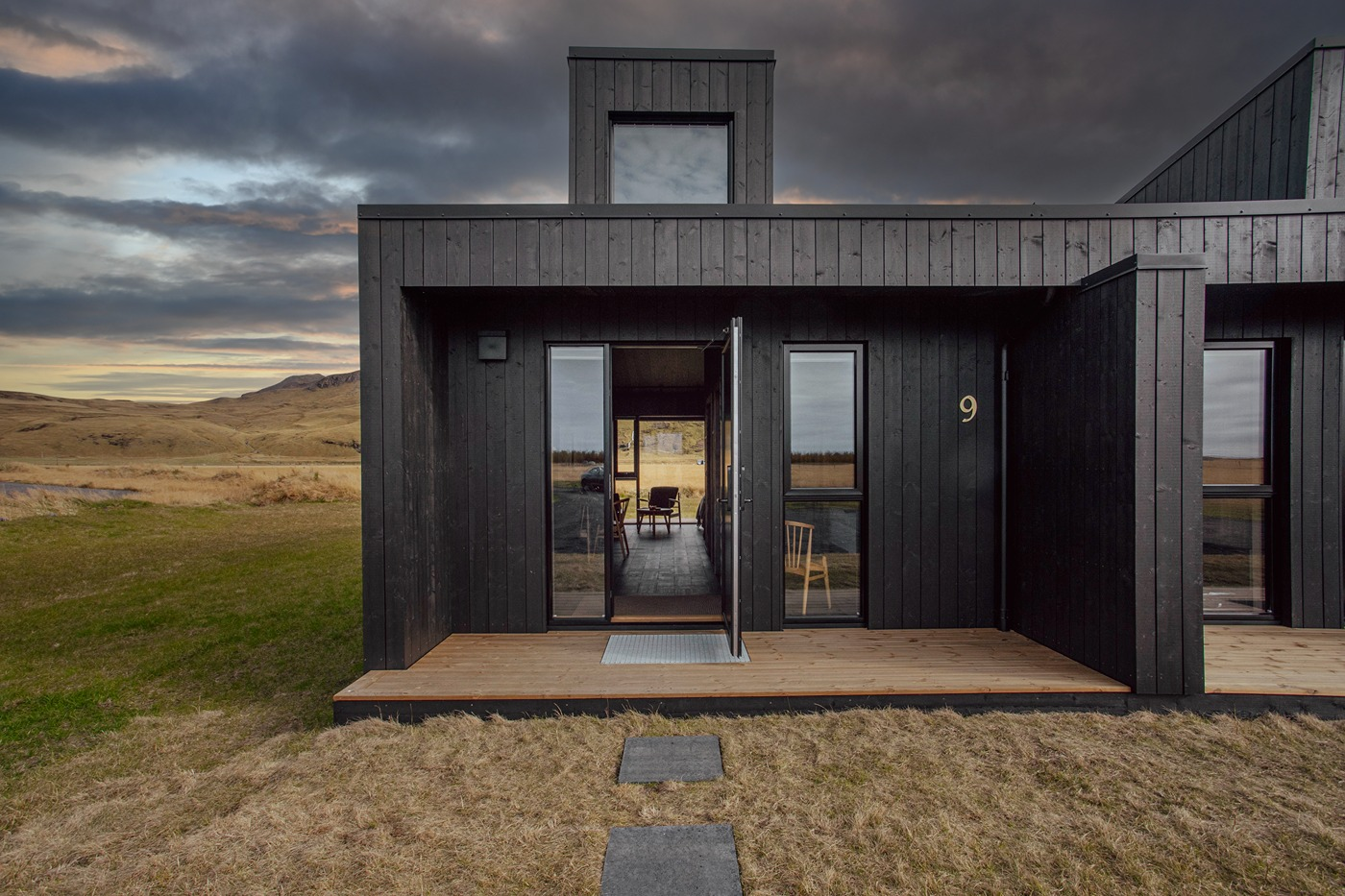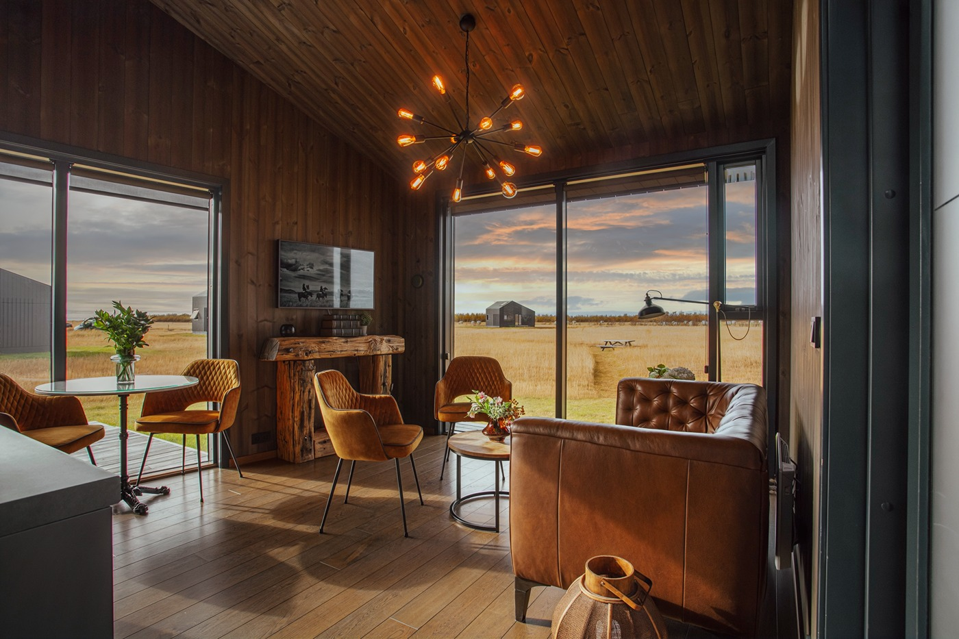 The eight luxury lodges were built in 2019. The lodge has two bedrooms (one of them upstairs), and a bathroom with a shower cabin. The kitchen and living room are in an open area with large panorama windows, cozy wooden design, and Nordic-style furniture. A small outside terrace completes the house. Built in 2019, each lodge is 43 m2 and comes with all necessary equipment. Recently, 4 new studio apartments were added. Located just 1 km from the famous Seljalandsfoss waterfall, each of our studio apartments is perfectly suited for 4 people.