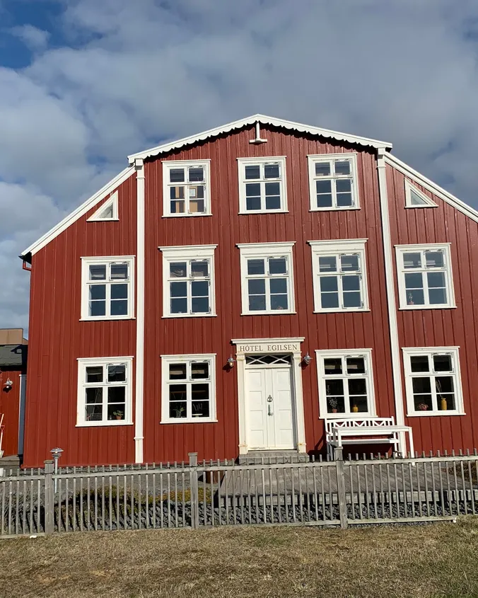 The old stark red house stands by the harbor in Stykkishólmur, a small fishing town by the beautiful Breiðafjörður with it´s numerous islands. The house was originally built in 1867 by a prominent businessman as a private residence but was renovated and opened as a family run boutique hotel in 2012. The small hotel preserves its classic heritage while enhancing it with the best of modern design where the guest lounge is the heart of the hotel. There, our guests can relax with a drink, mingle with locals and other guests or browse through the small library. At our doorsteps are the towns three museums, it´s restaurants and galleries as well as the harbour.