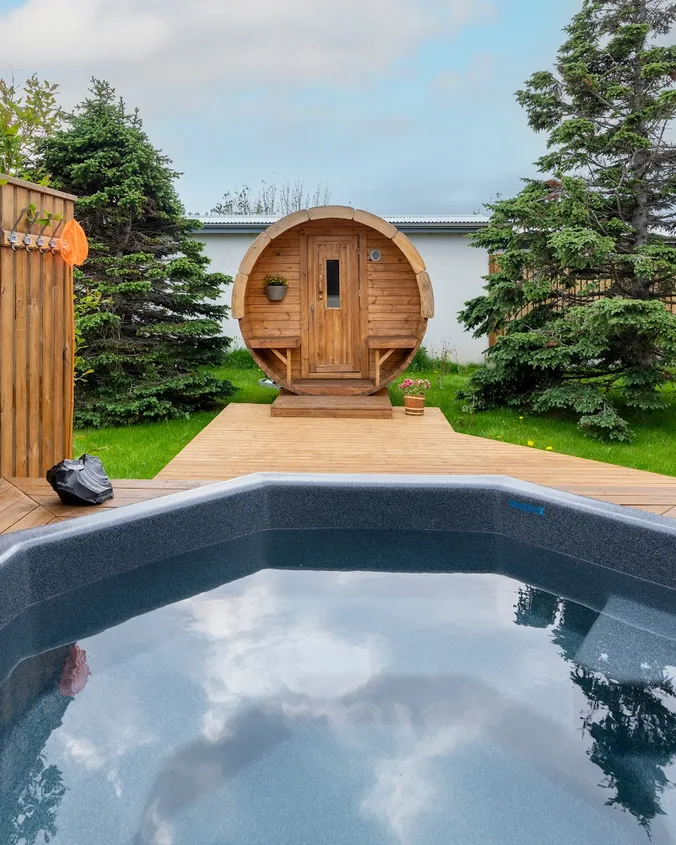 Túnfífill Guesthouse in Hvammstangi offers a cozy and quiet retreat with free access to a hot tub and sauna. The friendly hosts provide a warm welcome and ensure guests feel at home during their stay. The house is well-equipped with amenities like a sauna, hot tub, and even a washing machine. Guests can relax in the garden or on the sun terrace, making it a perfect spot for a relaxing getaway in North Iceland.