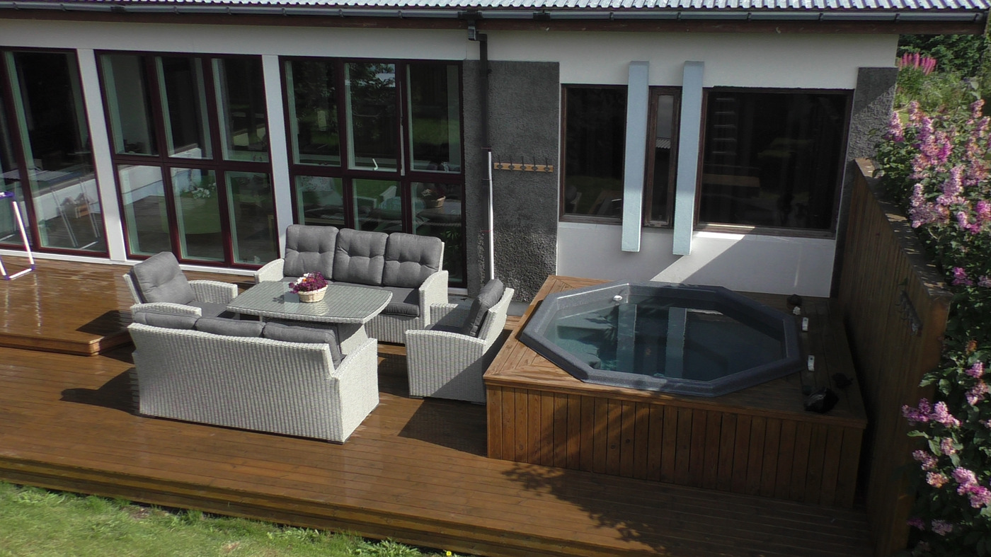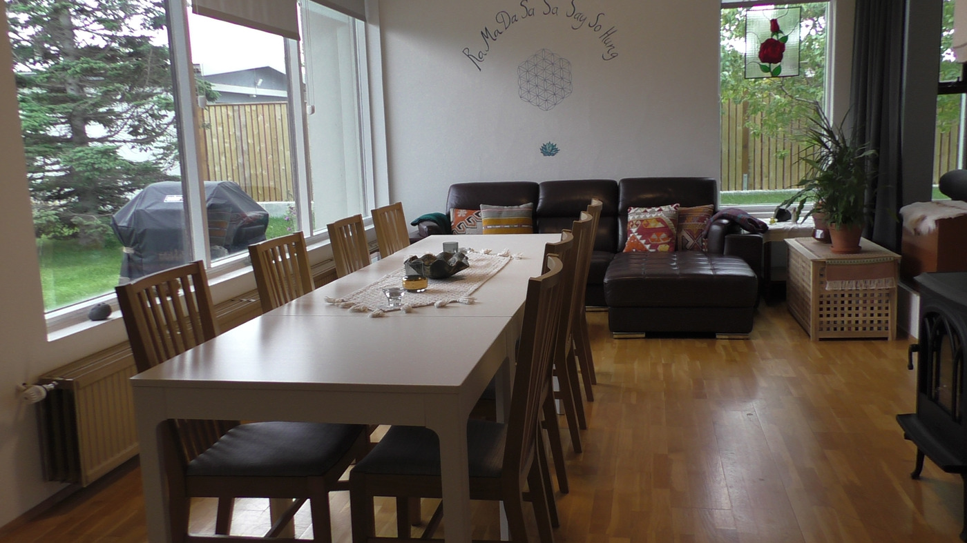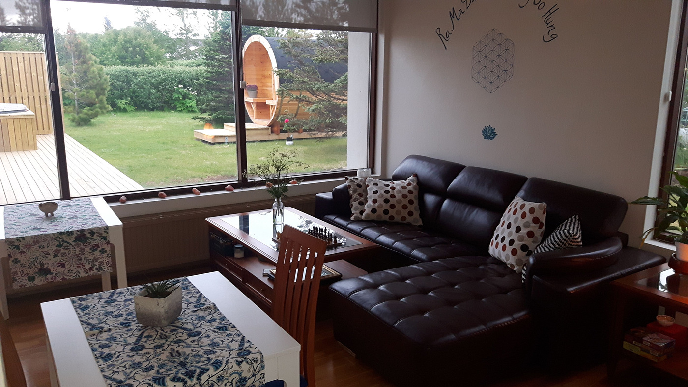 Túnfífill Guesthouse is at Laugarbakki, located just by Route 1. It is halfway to both Reykjavík and Akureyri. The one-story guesthouse is very spacious at 230 square meters. Sleeping accommodations are available for up to 9 people and it is also possible to request two extra floor mattresses. There are 4 bedrooms; three for 2 persons and one for a single person. All bedrooms have very good beds. A lounge is located next to the common room and has a comfortable sofa bed that can be used by 2 persons. There are 2 good bathrooms which both have showers while one also has a bathtub. The house also has a well-equipped kitchen, and the common room has good facilities for groups to come together for meals. A large hot tub is located on the patio as well as a sauna in the garden. Guests also have access to a reliable gas grill. There is also a very cozy solarium where guests can relax and recharge their batteries. The house is very suitable for families as well as smaller groups who want to spend time together in a peaceful environment. Laugarbakki is 8 km away from Hvammstangi where there is a market, swimming pool as well as other services. The location of the guesthouse offers many opportunities to see the northern lights due to the calm and quiet surroundings. There will also be opportunities to observe seals in their natural environment. Local natural wonders close to the guesthouse include Hvítserkur, Borgarvirki and Kolugljúfur. It is easy to escape into peace and serenity regardless of whether you are traveling alone or with a group.