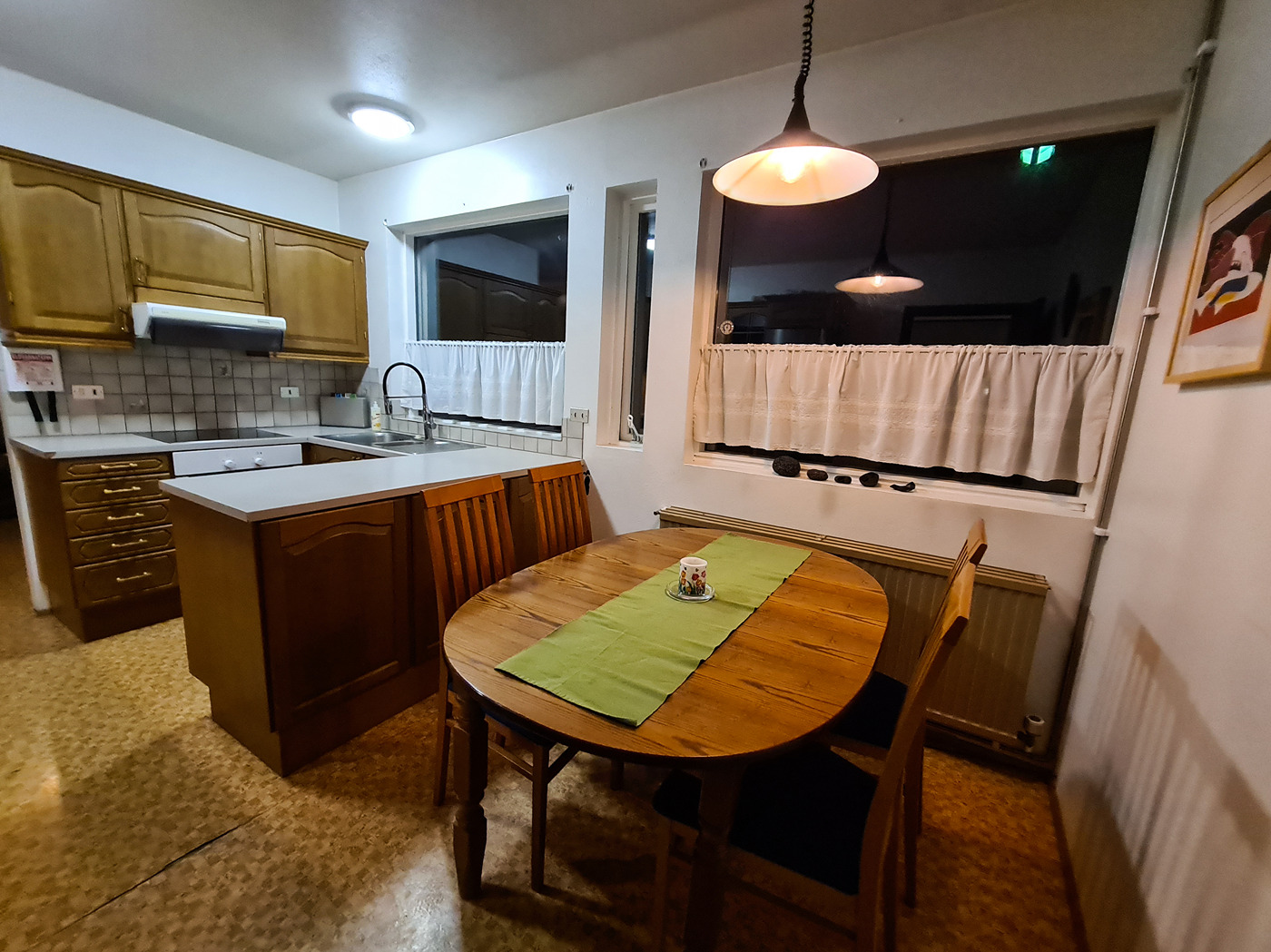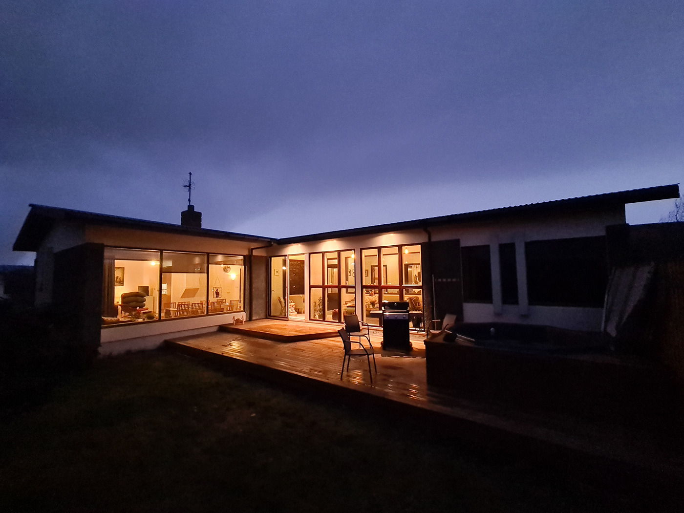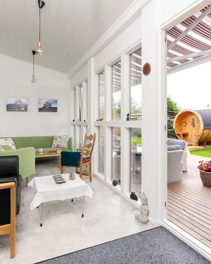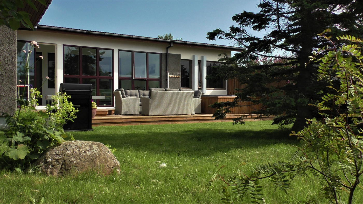 Túnfífill Guesthouse is at Laugarbakki, located just by Route 1. It is halfway to both Reykjavík and Akureyri. The one-story guesthouse is very spacious at 230 square meters. Sleeping accommodations are available for up to 9 people and it is also possible to request two extra floor mattresses. There are 4 bedrooms; three for 2 persons and one for a single person. All bedrooms have very good beds. A lounge is located next to the common room and has a comfortable sofa bed that can be used by 2 persons. There are 2 good bathrooms which both have showers while one also has a bathtub. The house also has a well-equipped kitchen, and the common room has good facilities for groups to come together for meals. A large hot tub is located on the patio as well as a sauna in the garden. Guests also have access to a reliable gas grill. There is also a very cozy solarium where guests can relax and recharge their batteries. The house is very suitable for families as well as smaller groups who want to spend time together in a peaceful environment. Laugarbakki is 8 km away from Hvammstangi where there is a market, swimming pool as well as other services. The location of the guesthouse offers many opportunities to see the northern lights due to the calm and quiet surroundings. There will also be opportunities to observe seals in their natural environment. Local natural wonders close to the guesthouse include Hvítserkur, Borgarvirki and Kolugljúfur. It is easy to escape into peace and serenity regardless of whether you are traveling alone or with a group.