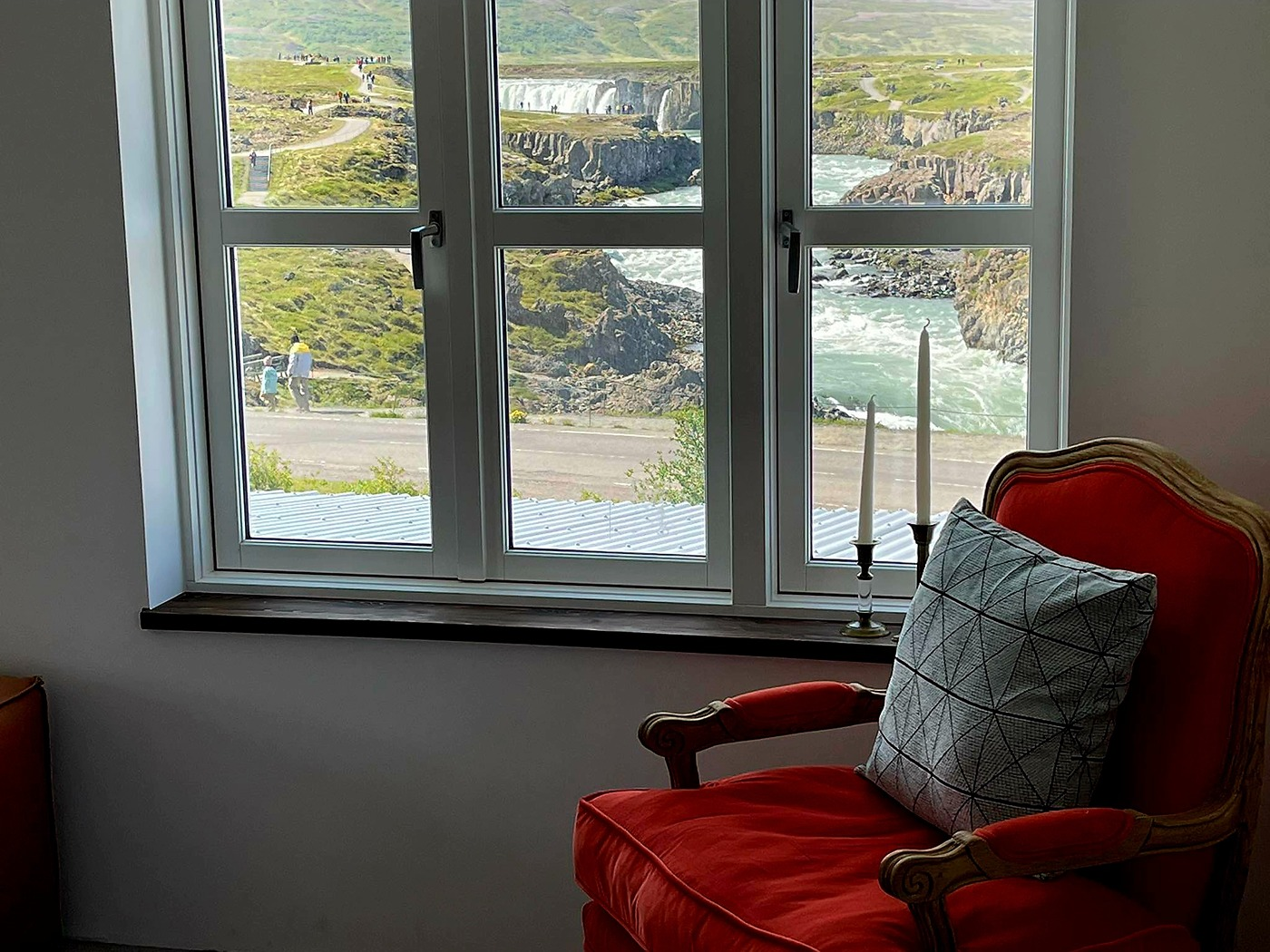 Only a stone's throw away from the magnificent Diamond circle in Northern Iceland with one of the islands finest natural sights lies in the Bárðardalur the stunning and unique waterfall Goðafoss and just on his impressive feet with a mesmerizing view directly on this natural spectacle you can find our cozy and comfortable Hotel Godafoss.