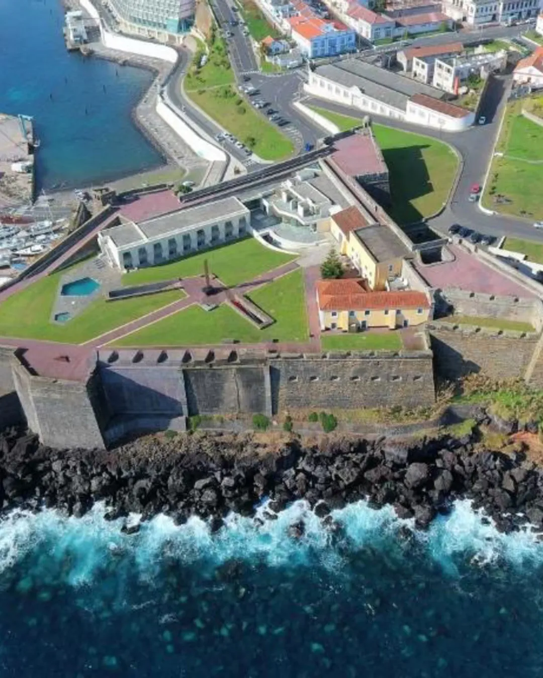 Pousada Forte Angra do Heroísmo is probably the most atmospheric place to stay in the city. The hotel is housed inside the 16th-century São Sebastião Fortress, built by the Spanish during their rule over the Azores, and you can still feel the weight of history in its thick stone walls and unique seaside setting. Staying here is like living inside a piece of Angra’s story—the fortress once protected the bay from pirates, and today it welcomes travelers with comfort and views across the Atlantic.