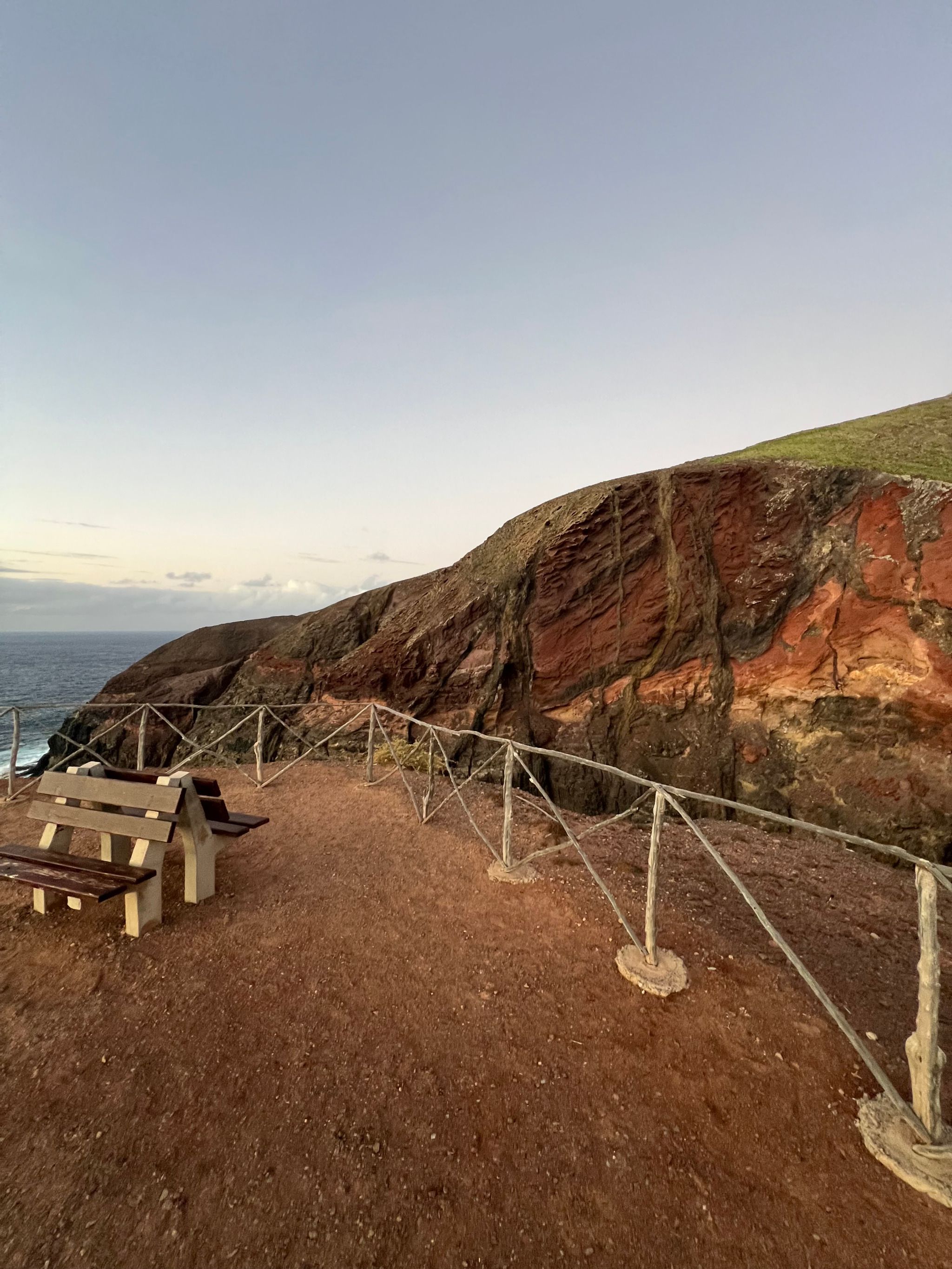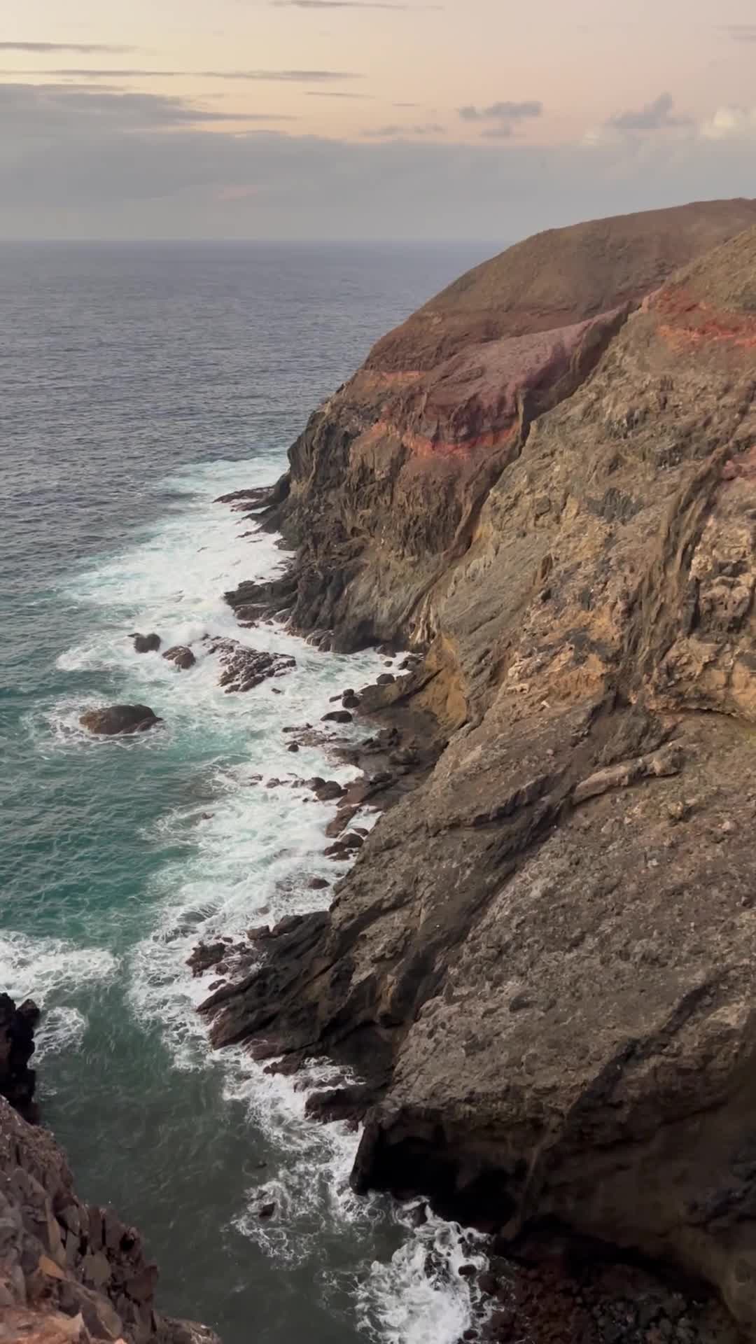 From the nearby viewpoint, you’re rewarded with a striking panorama of the island’s rugged terrain and layers of volcanic rock—like an open book of Porto Santo’s geological history. The cliffs drop steeply into the turquoise waters below, creating a dramatic yet peaceful scene.