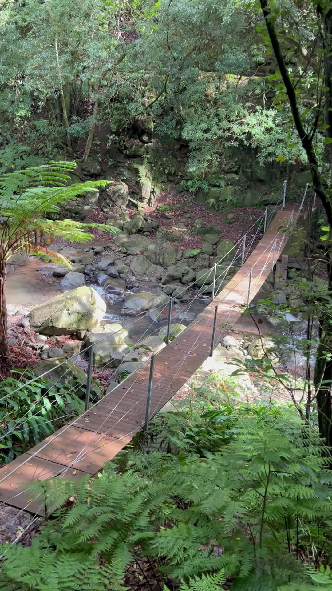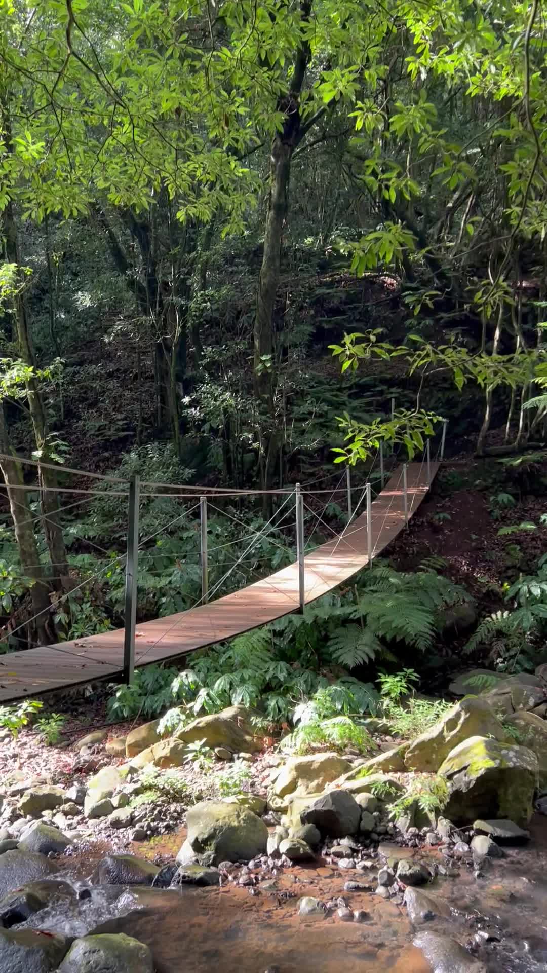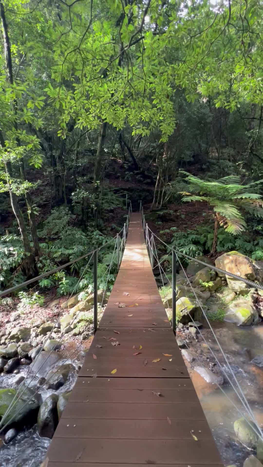 This suspension bridge is located in the Santa Cruz area. To reach it, you’ll need to walk about 2 kilometers along the Levada trail on a flat path starting from this spot. Alternatively, you can take a 7-kilometer hike in the area, which also includes two additional waterfalls and the historic Ponte de Roma bridge.