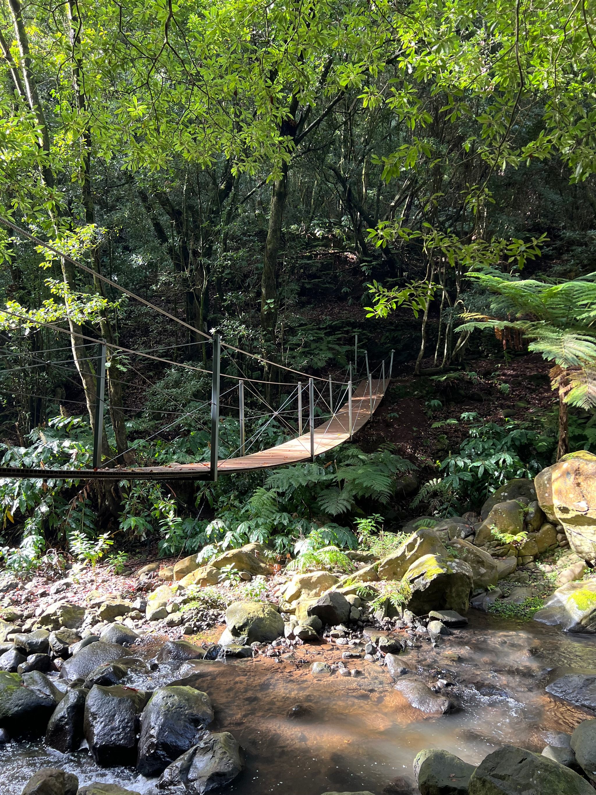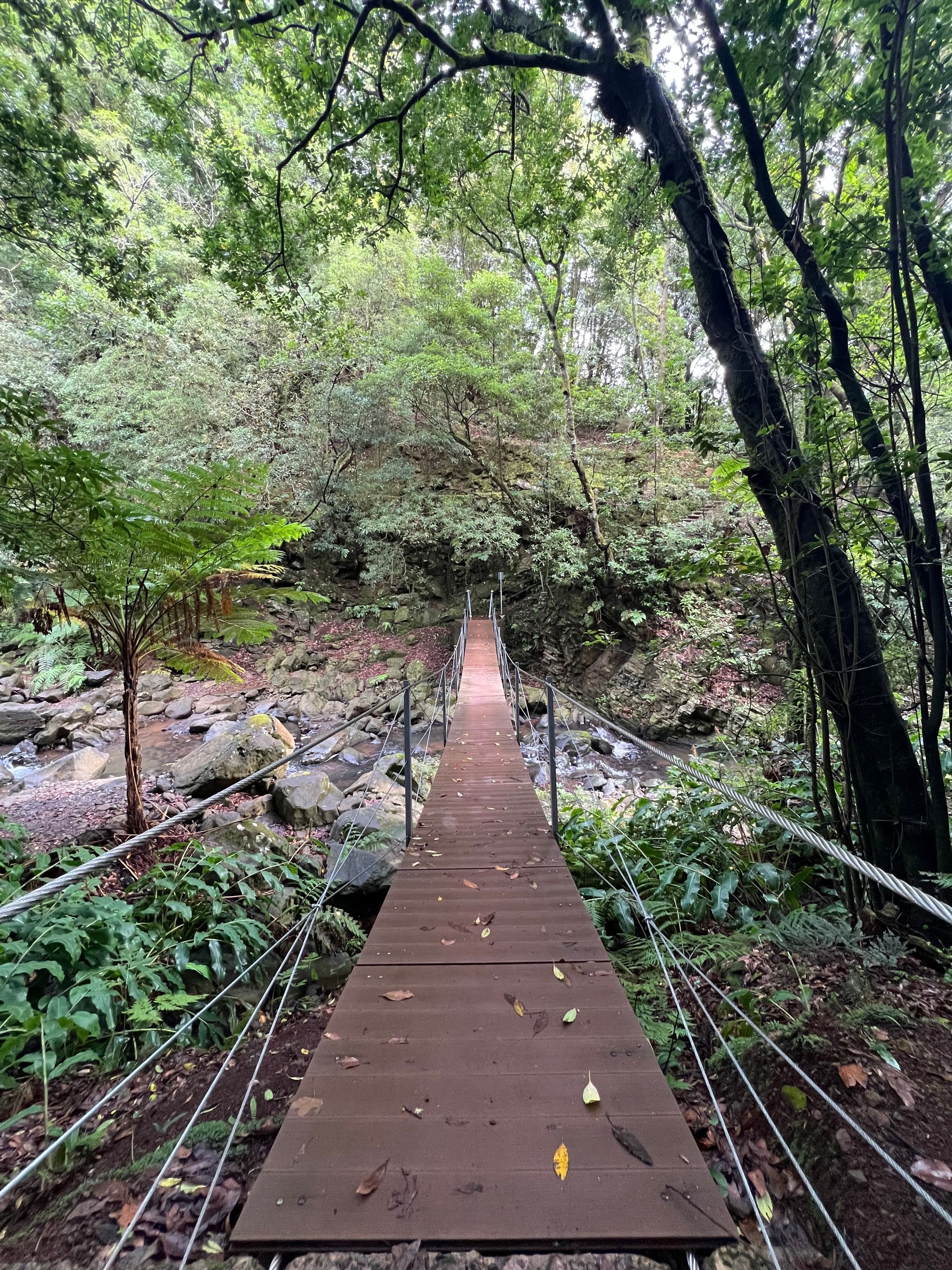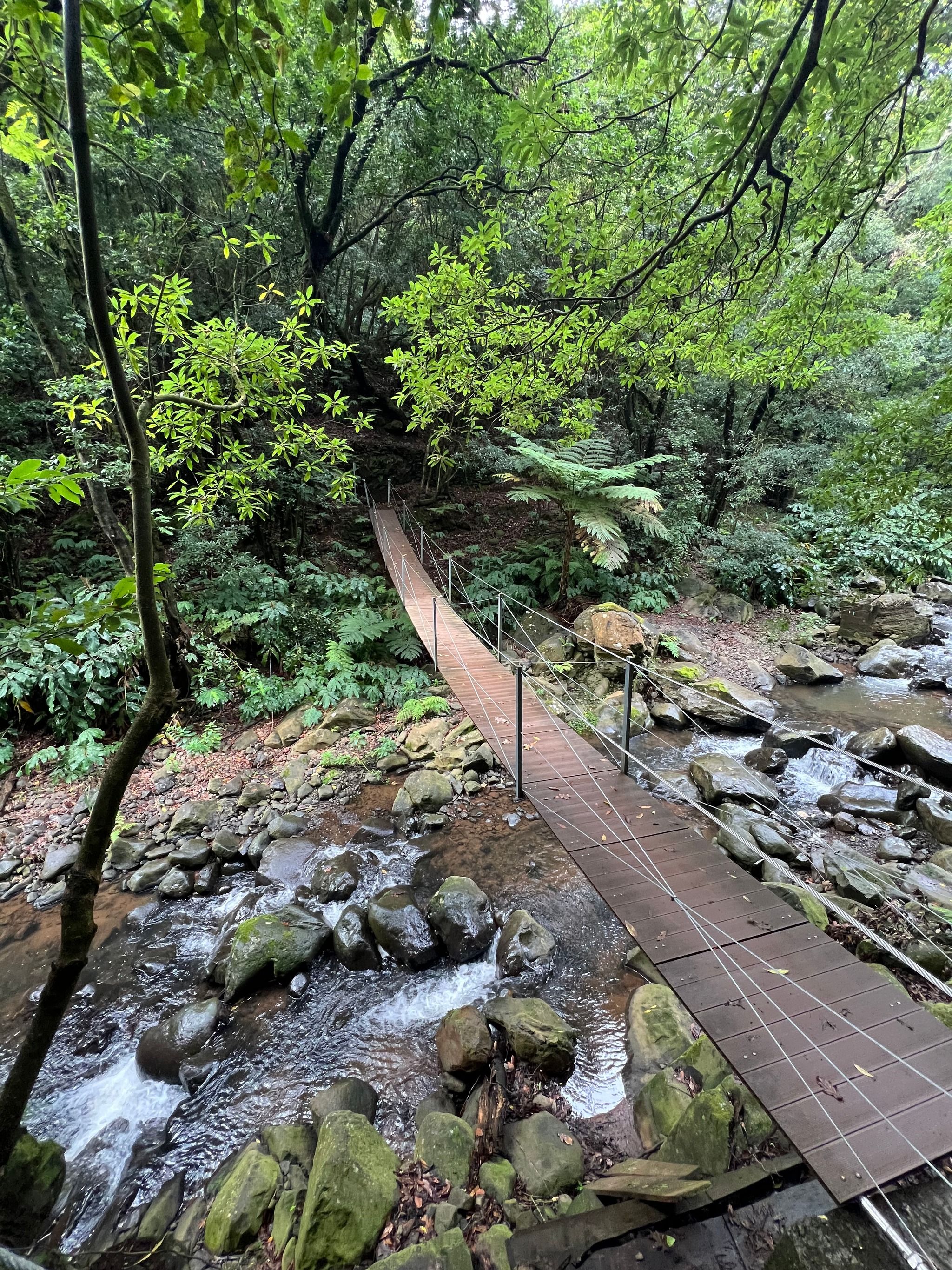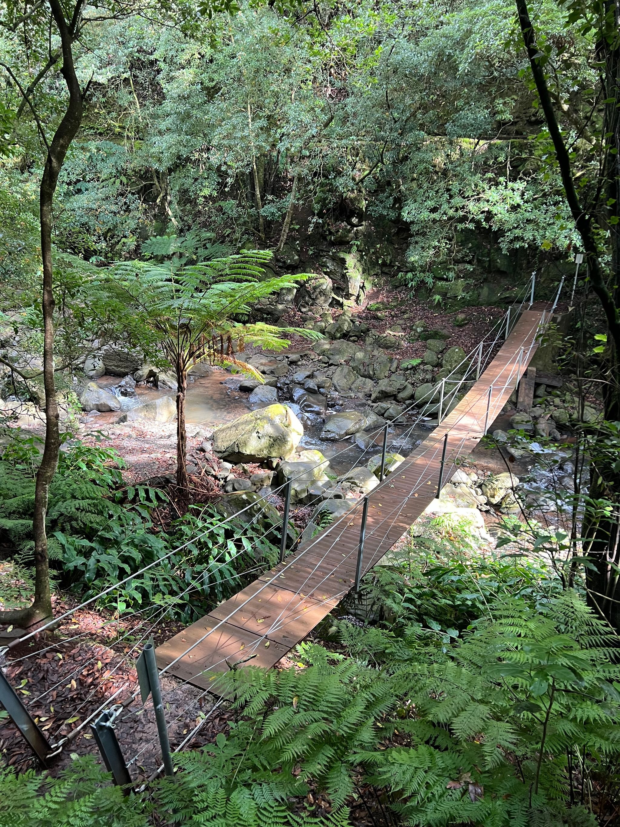 This suspension bridge is located in the Santa Cruz area. To reach it, you’ll need to walk about 2 kilometers along the Levada trail on a flat path starting from this spot. Alternatively, you can take a 7-kilometer hike in the area, which also includes two additional waterfalls and the historic Ponte de Roma bridge.