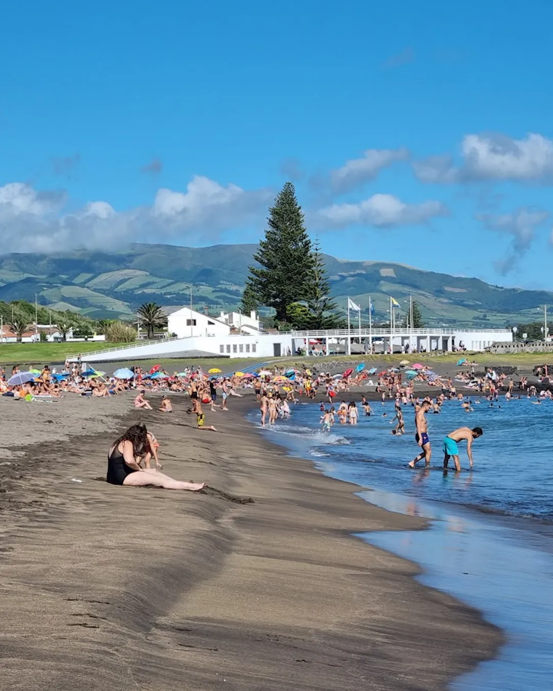Volcanic beach with water sports