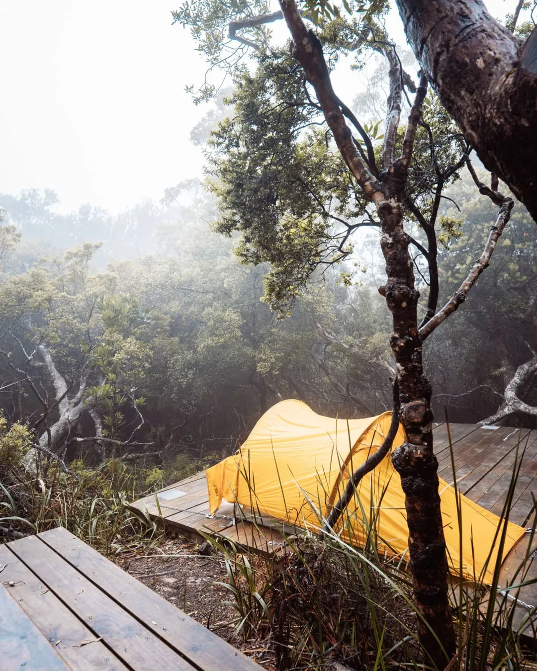 The site has raised tent platforms, drop toilets, and a rainwater tank. It’s free and it’s first-come, first-served.