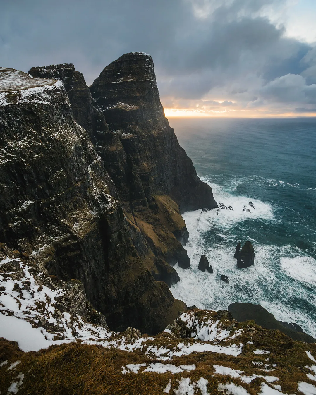 High cliffs and sea stacks