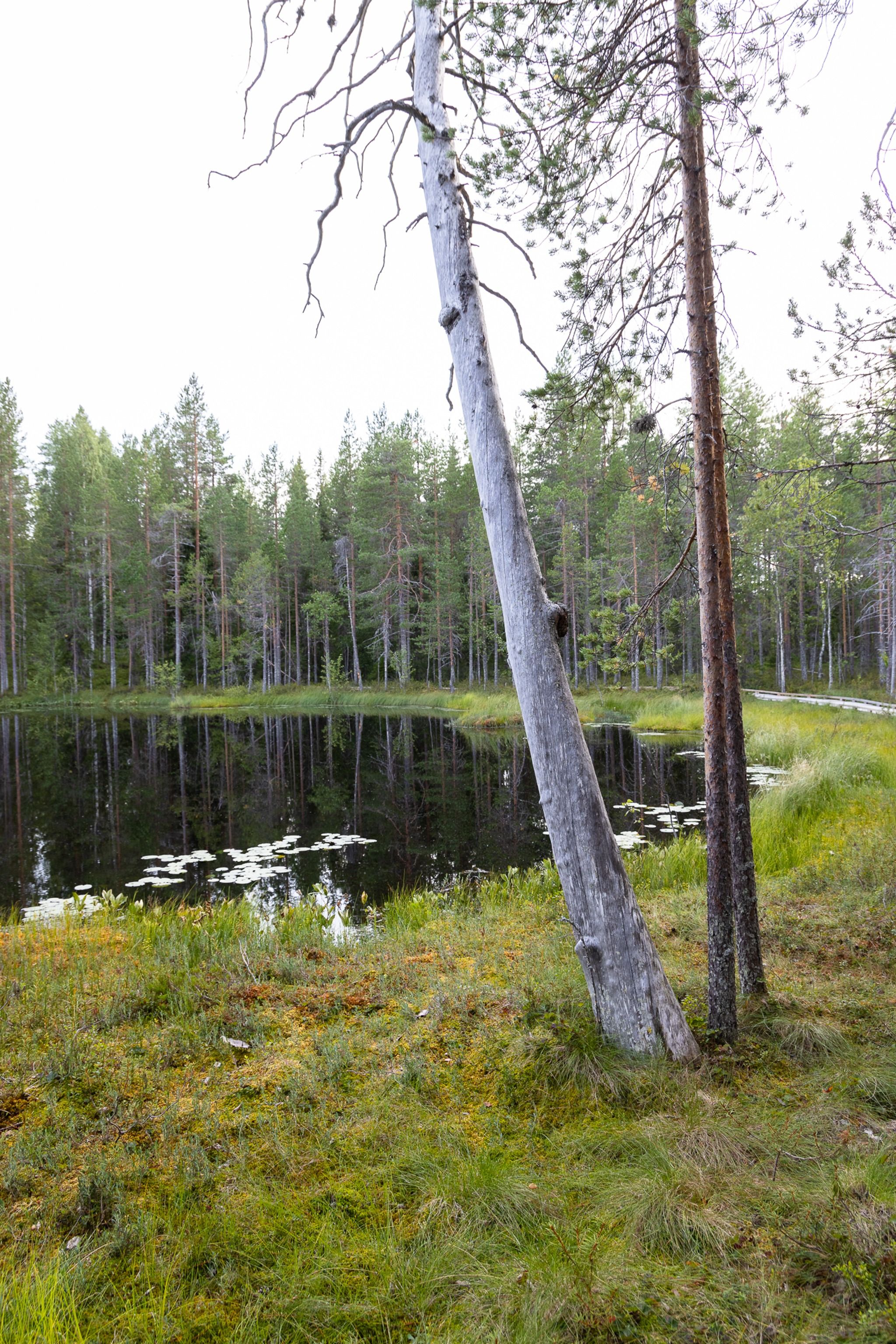 At the beginning of the trail, there is a barrier-free nature trail around a pond, a fireplace and a wooden toilet, but along the trail, there are also two other hut fireplaces, caves, gorges, a viewpoint and a lookout tower. I recommend walking the Kätkävaara nature trail clockwise. Therefore, choose the left-hand path from the fireplace on the shore of the pond, which follows the pond for about 70m and then turns right into the forest.