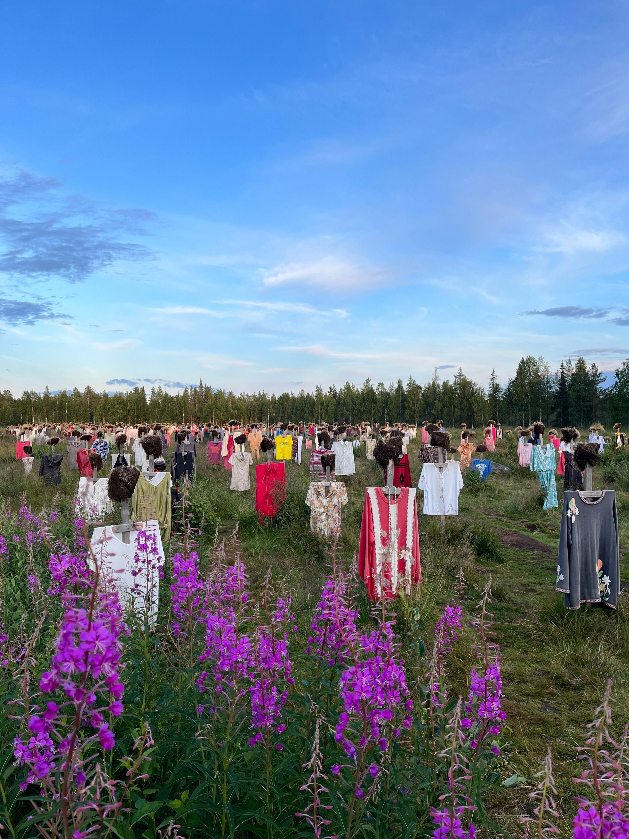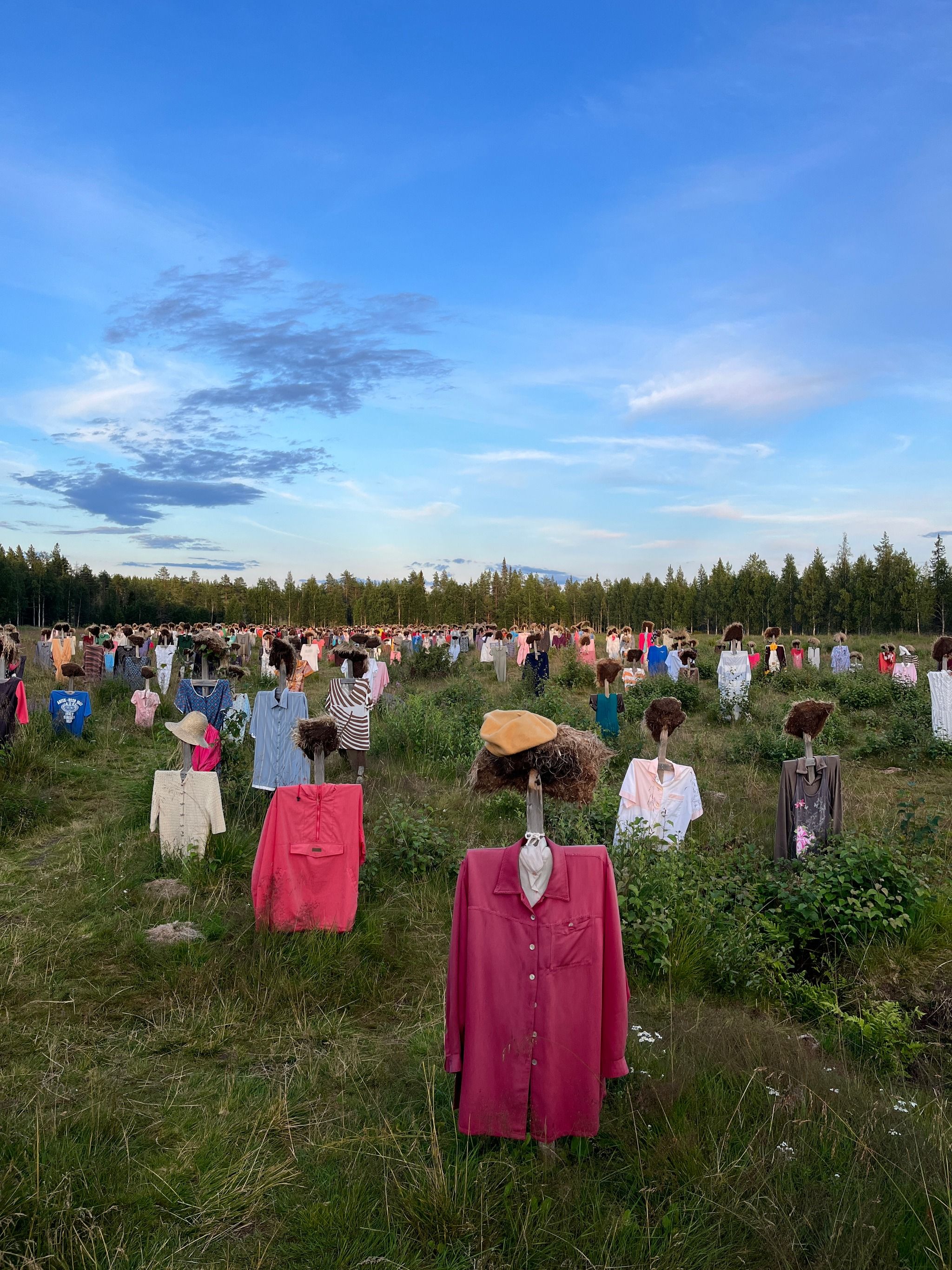 There is a café next to the Silent People, where you can get delicious delicacies such as pancakes. I always stop here when I drive by and go admire their new clothes (I drive by maybe once a year nowadays). The place always moves me almost to tears, because the Silent People remind me of the oppressed, the forgotten, the war-torn, the lonely, the depressed and those who have left this world behind.