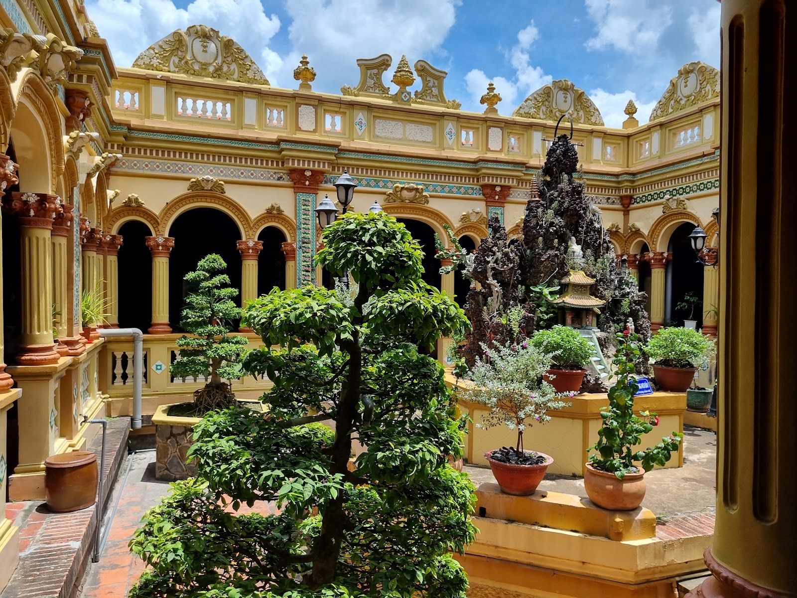 Vinh Trang Pagoda was originally built in the early 19th century, around 1849, by a Buddhist monk named Master Hue Dang. The pagoda is a blend of various architectural styles, including Vietnamese, Chinese, Khmer, and European influences. This unique combination is evident in its design elements, such as the intricate wood carvings, arched windows, and ornate mosaics.