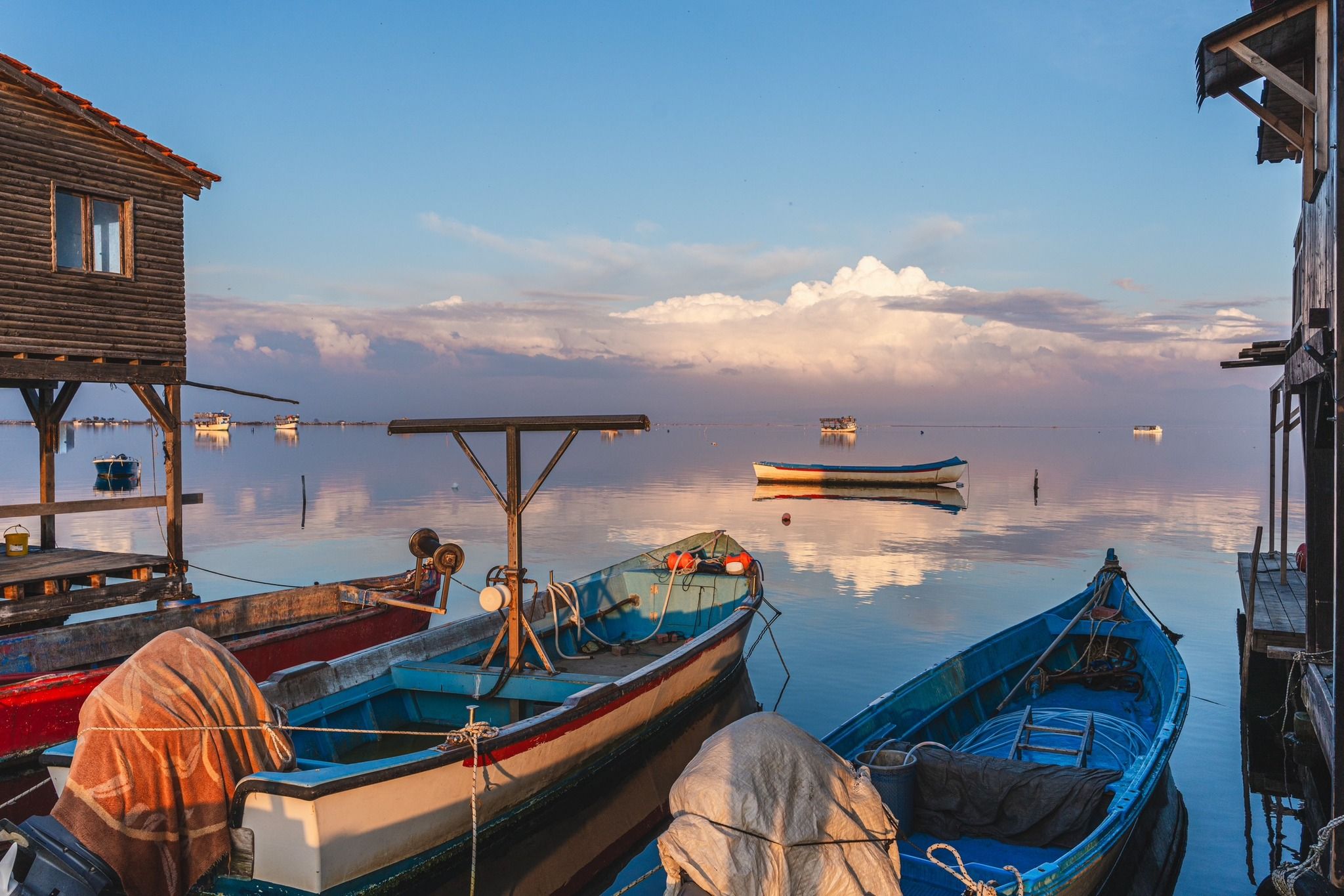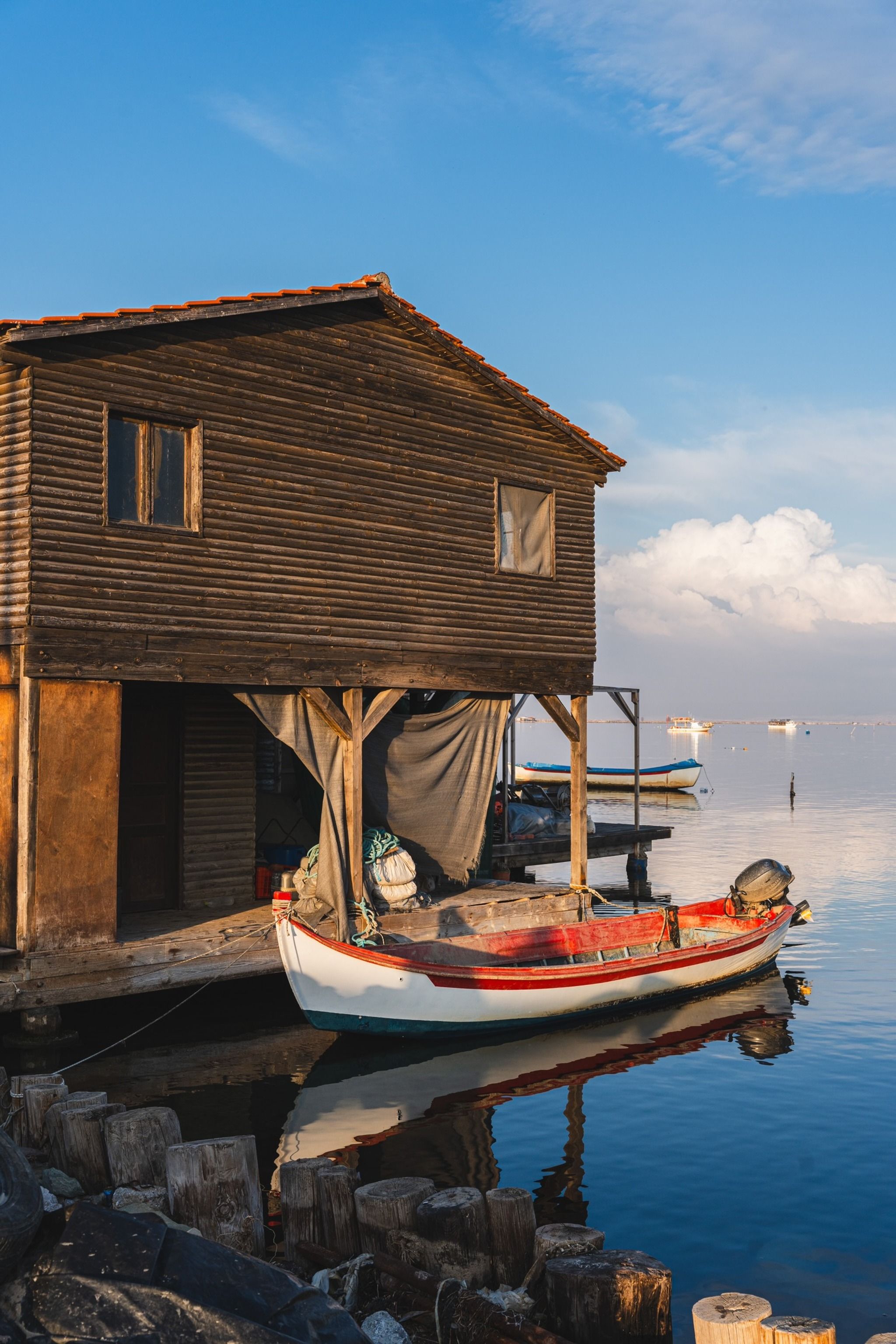 On the edge of it, where the land meets the sea, you’ll find the mussel farms. The fishermen in the area have built their wooden huts right on the marina, where they store and keep their equipment and boats, take a rest, cook some food. The huts are all identical and can have up to 4 people. If you see a fisherman, talk to them and they’ll be happy to speak to you about what they do.