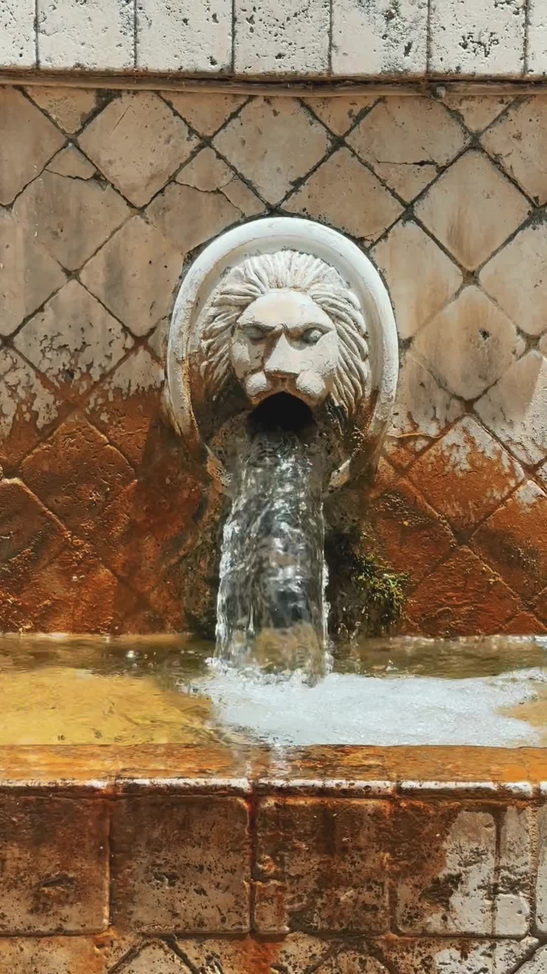 Where water flows from the lion's heads