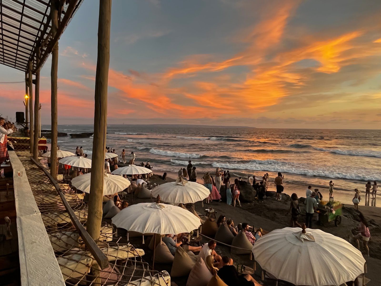 Grab a beanbag or book one of the daybeds if you’re in the mood to go full luxe — just know there’s a minimum spend for the good seats (totally worth it around sunset). And yep, the sunsets here are next level. Golden hour hits different when you’re sipping a frozen cocktail with your feet in the sand.