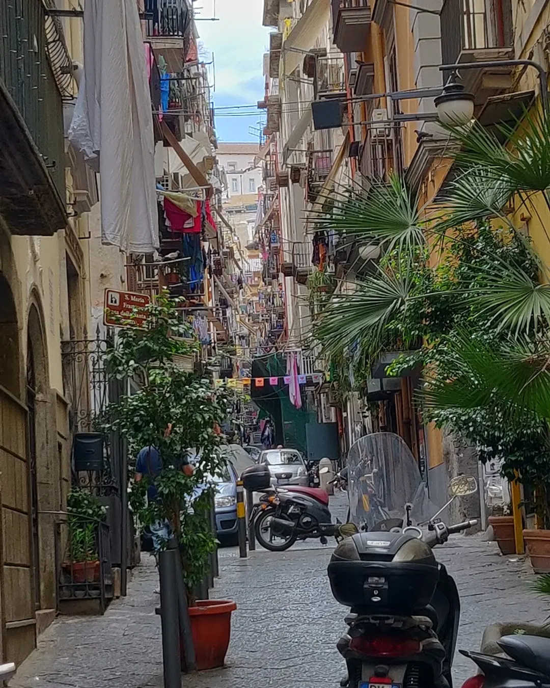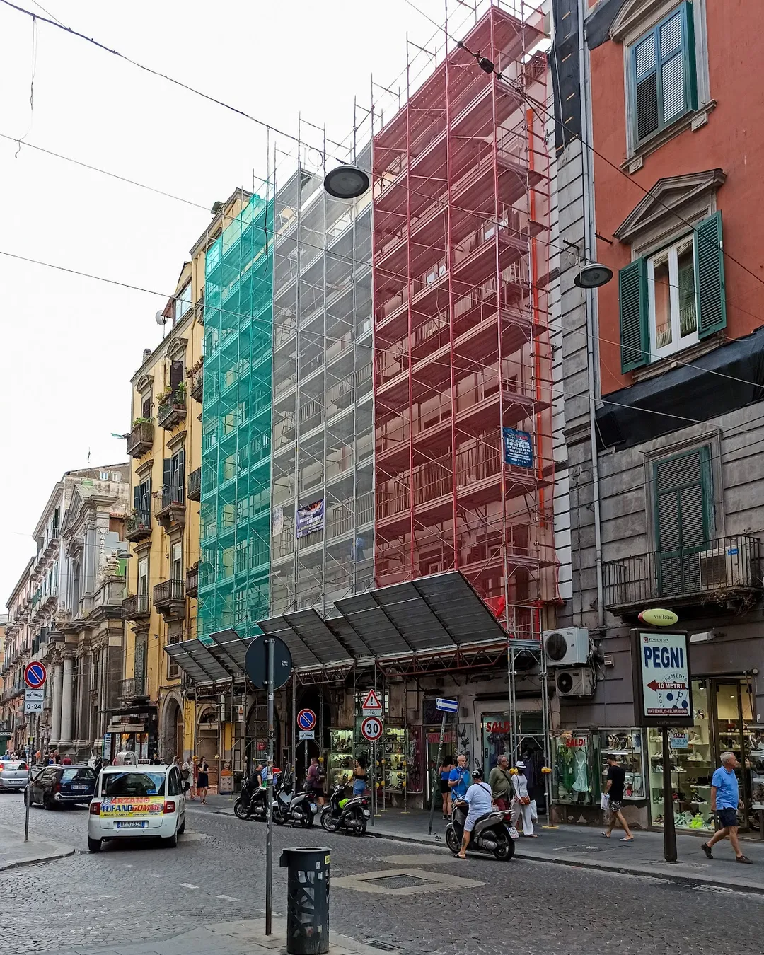 Busy street with many shops and food stalls