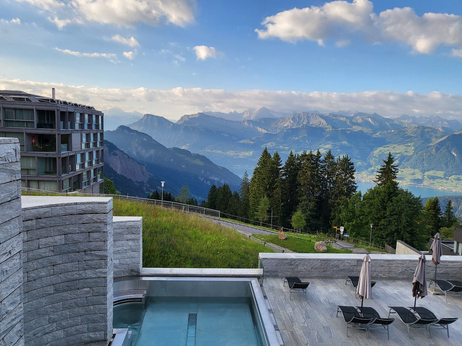 Website: www.aqua-spa-resorts.ch Location: Hotel Rigi Kaltbad - ride mountain train from Vitznau to Rigi Kaltbad First Open: daily 10:00 - 22:00 (hotel guests only from 8:00 - 10:00)