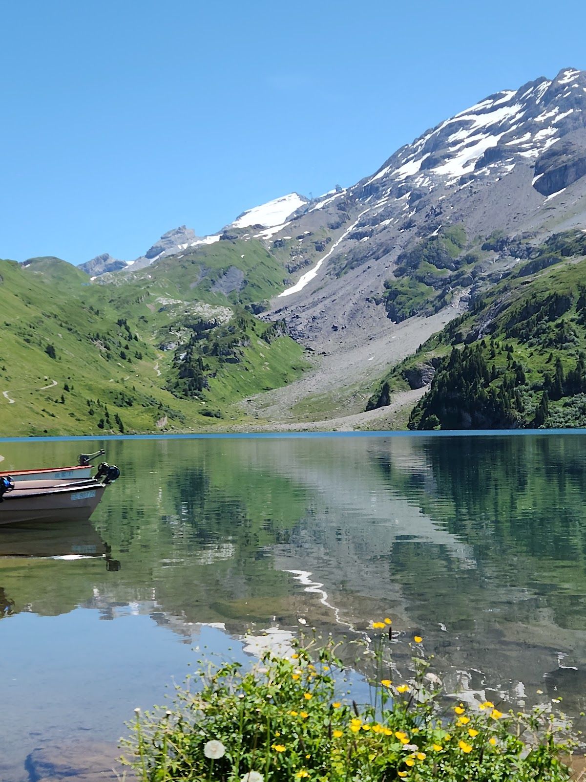 Then hike down to the Engstlensee lake. Or ride the second chair lift half way down the mountain, then walk about 15 mins to the lake.