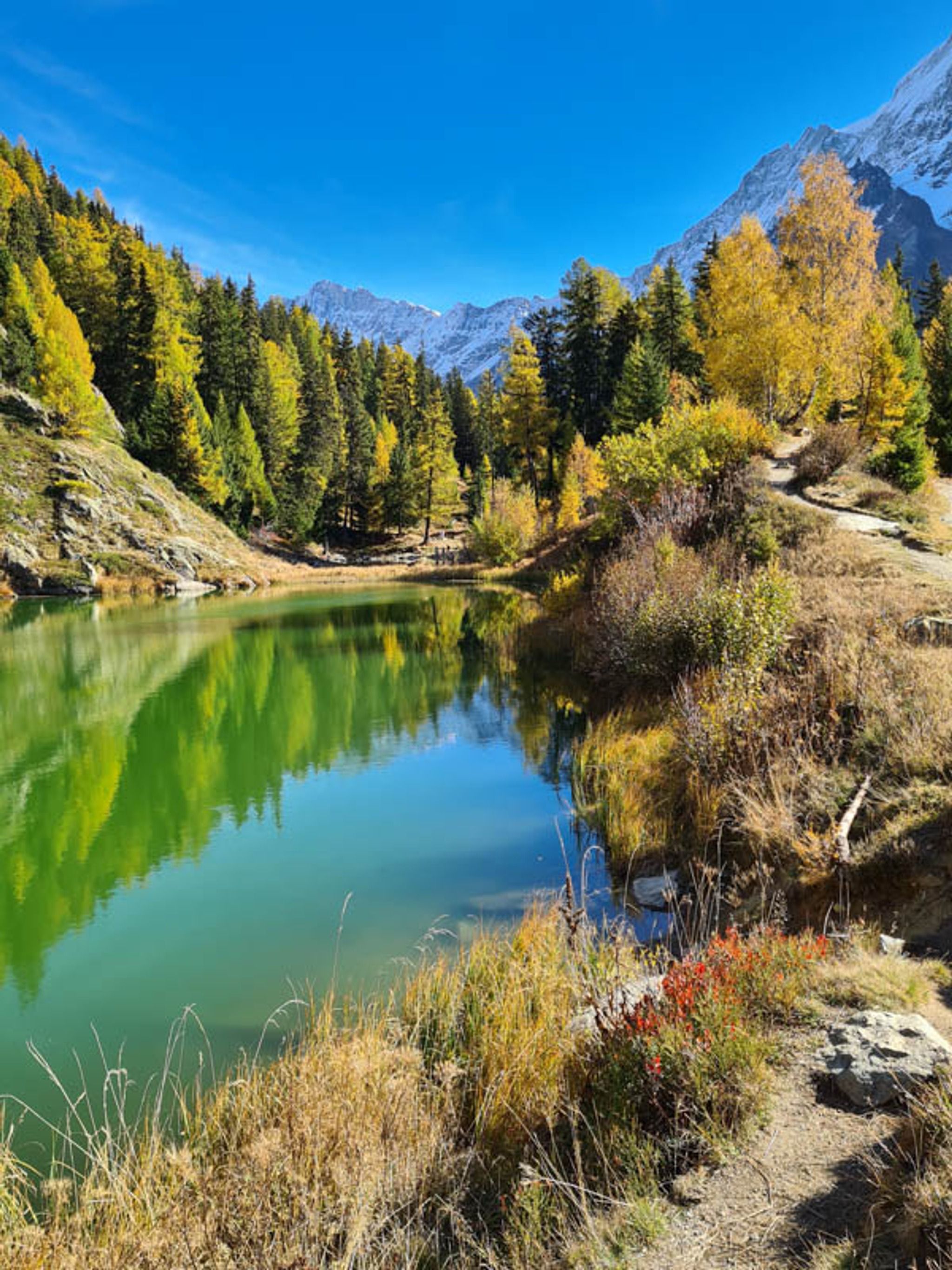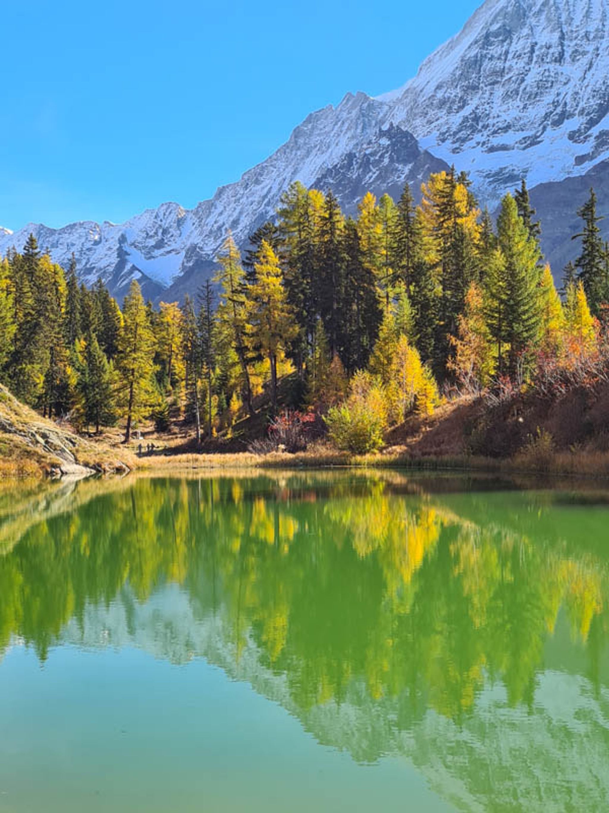 Alpine lake with mountain reflection
