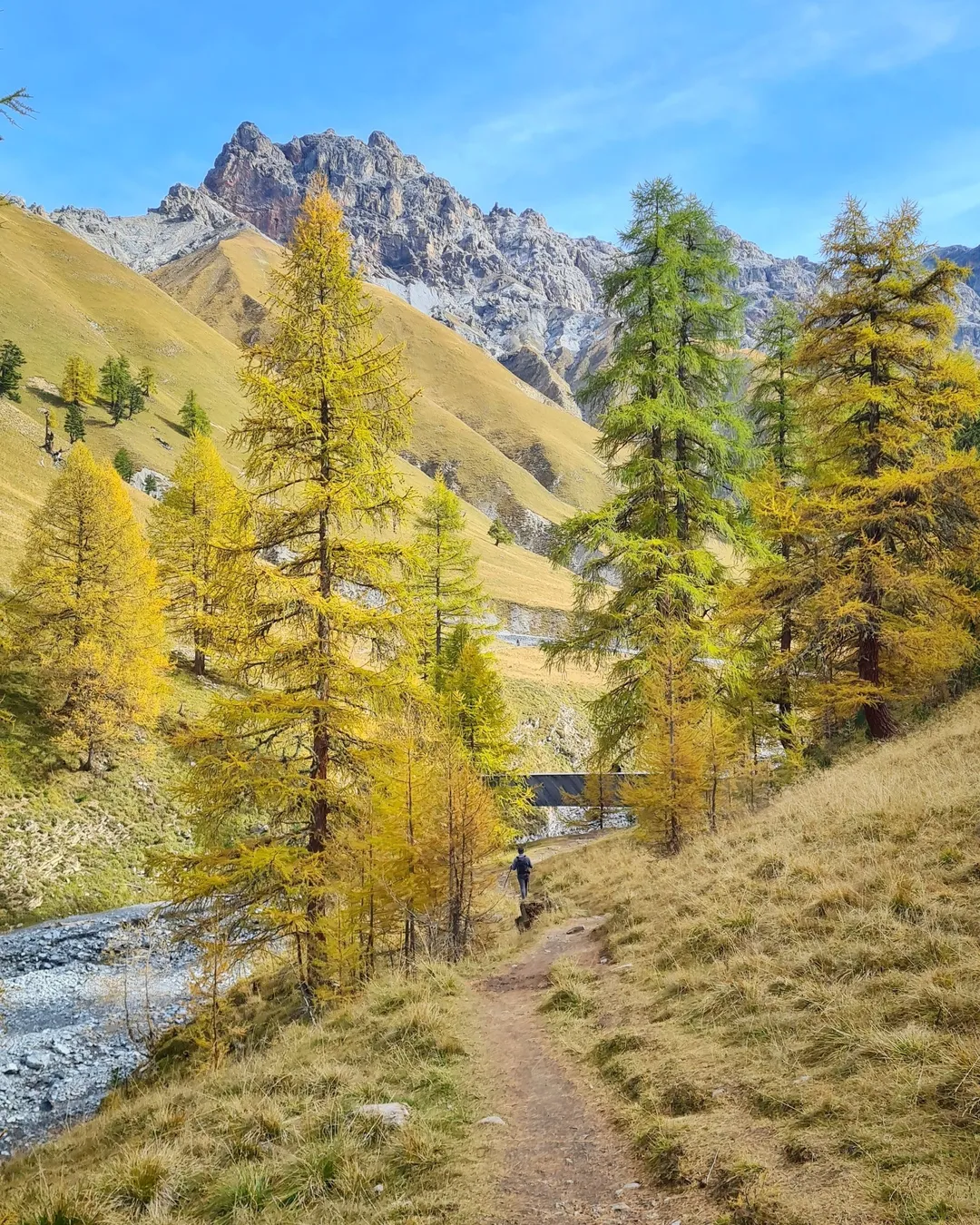 You can ride Bus 7 to S chanf, Parc Naziunal, the bus stop at the start of the trail. This bus typically runs from early June to the third week of October. Your exact connection depends on your starting point. From St Moritz, it takes about 40 mins.