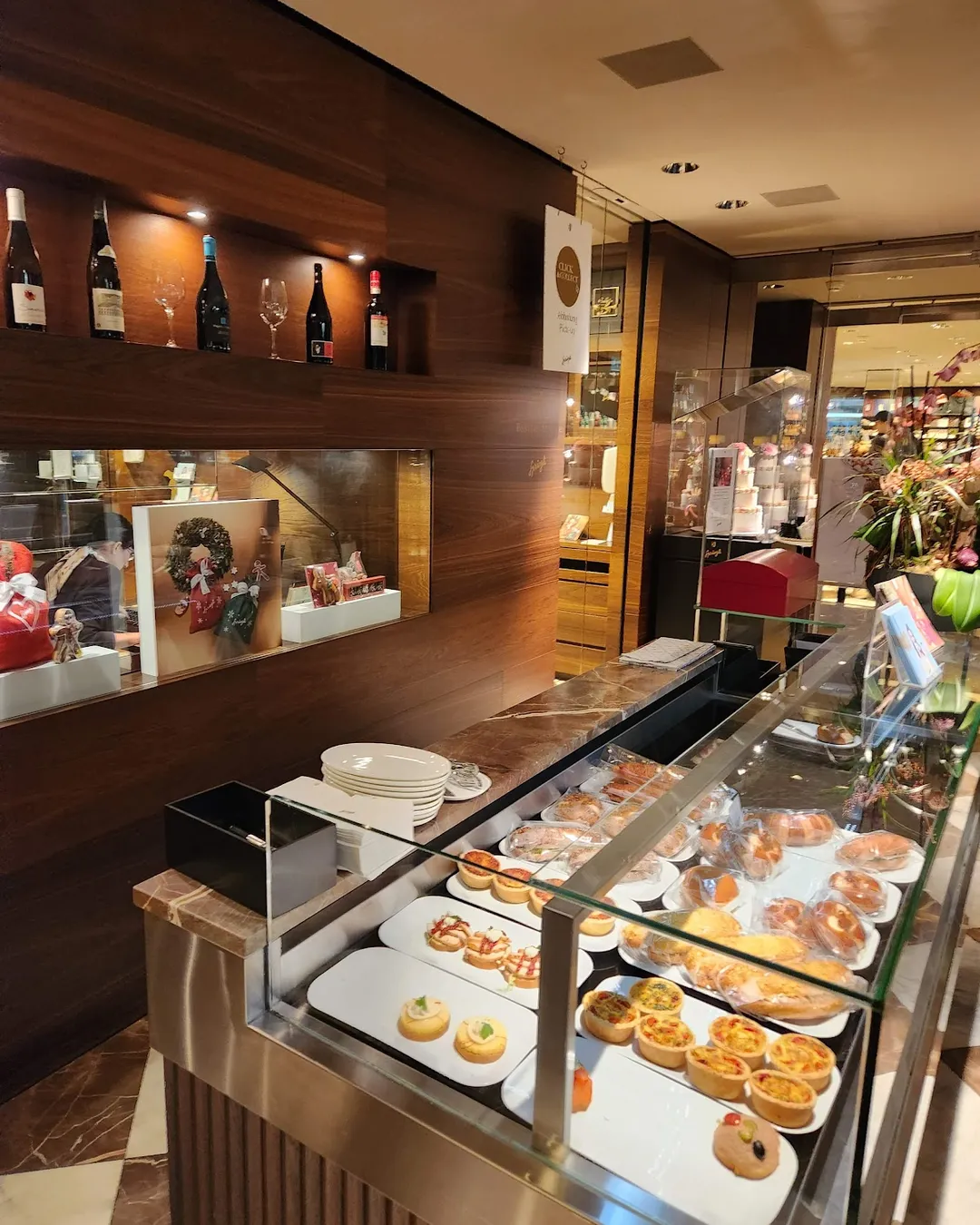 Sprüngli is a Zürich institution, a “Confiserie” selling chocolate, pastries, cakes, as well as sandwiches and other savory delights. The main location at Paradeplatz has a traditional café above the shop, with a cozy interior and lots of windows looking over the busy Paradeplatz.